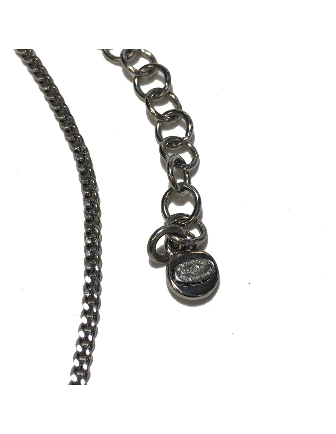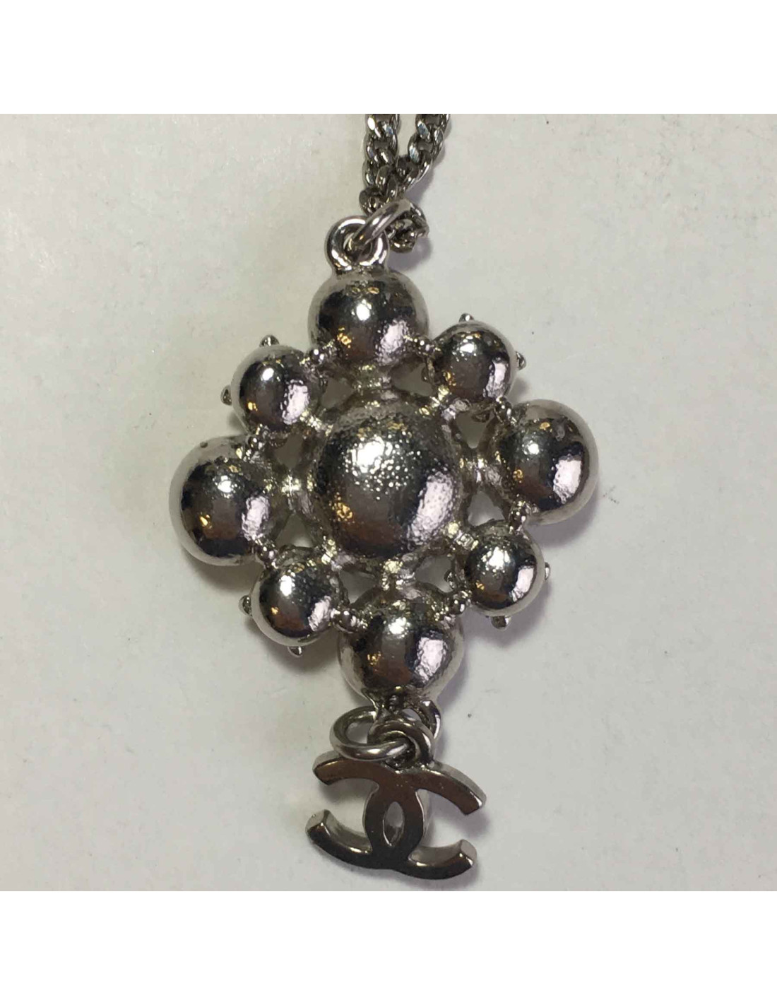 Chanel chain necklace with pendant in silver metal, CC and rhinestones. Collection Autumn / Winter 2012.