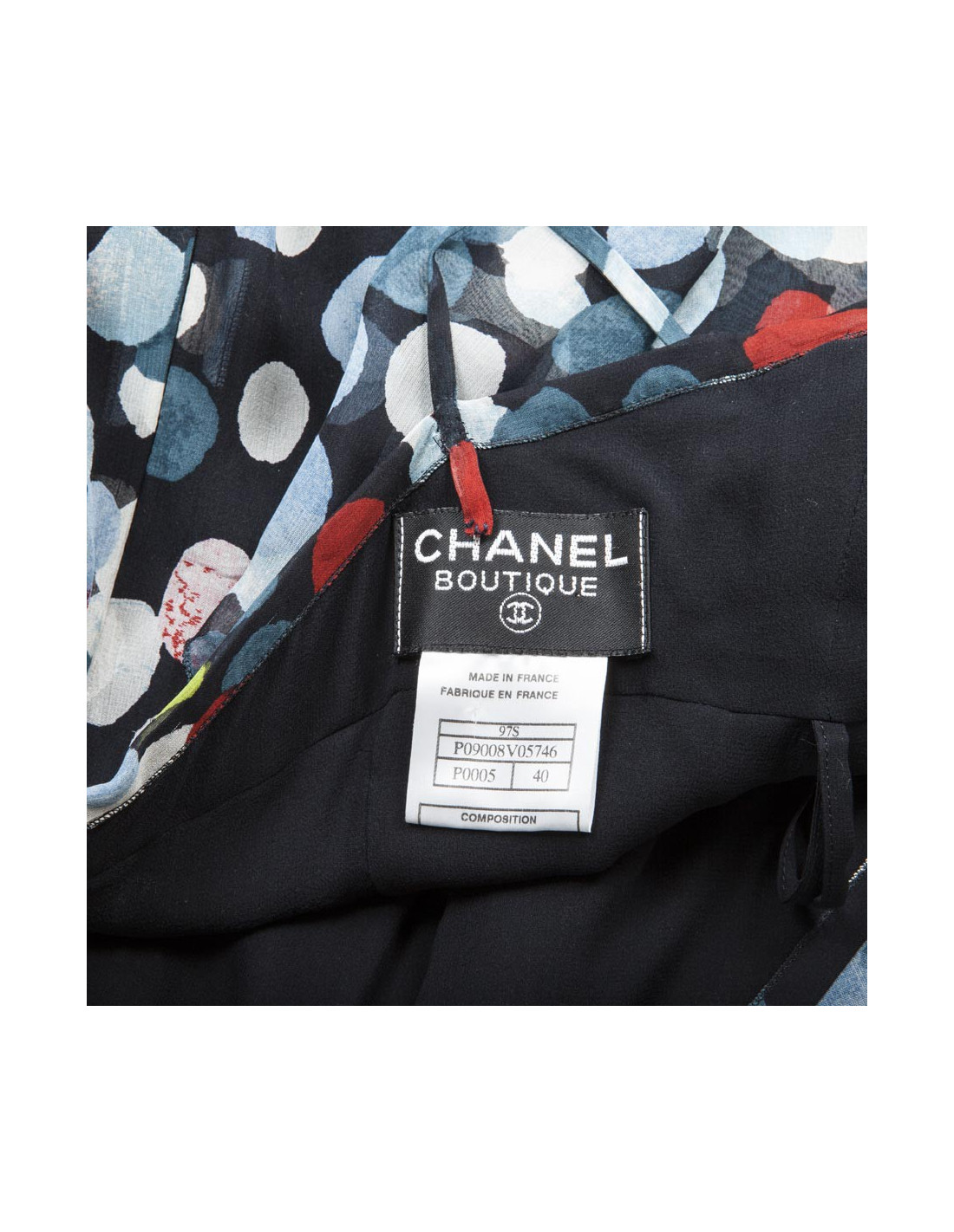 Online only Last items in stock NIGHT DRESSES CHANEL silk cocktail dress size 36FR CHANEL 18741 2,100.00 € CHANEL silk cocktail dress size 36FR Condition: very good Made in France Size: 36FR Model: cocktail dress Materials: silk voile Colors: Black Measurements: Front length: 98cm, chest width: 43cm, waist width: 40cm, Length 150 cm Details:Chanel asymmetrical halter open-back dress in black silk voile. Invisible back zipper, ties at back of neck. Add to cart