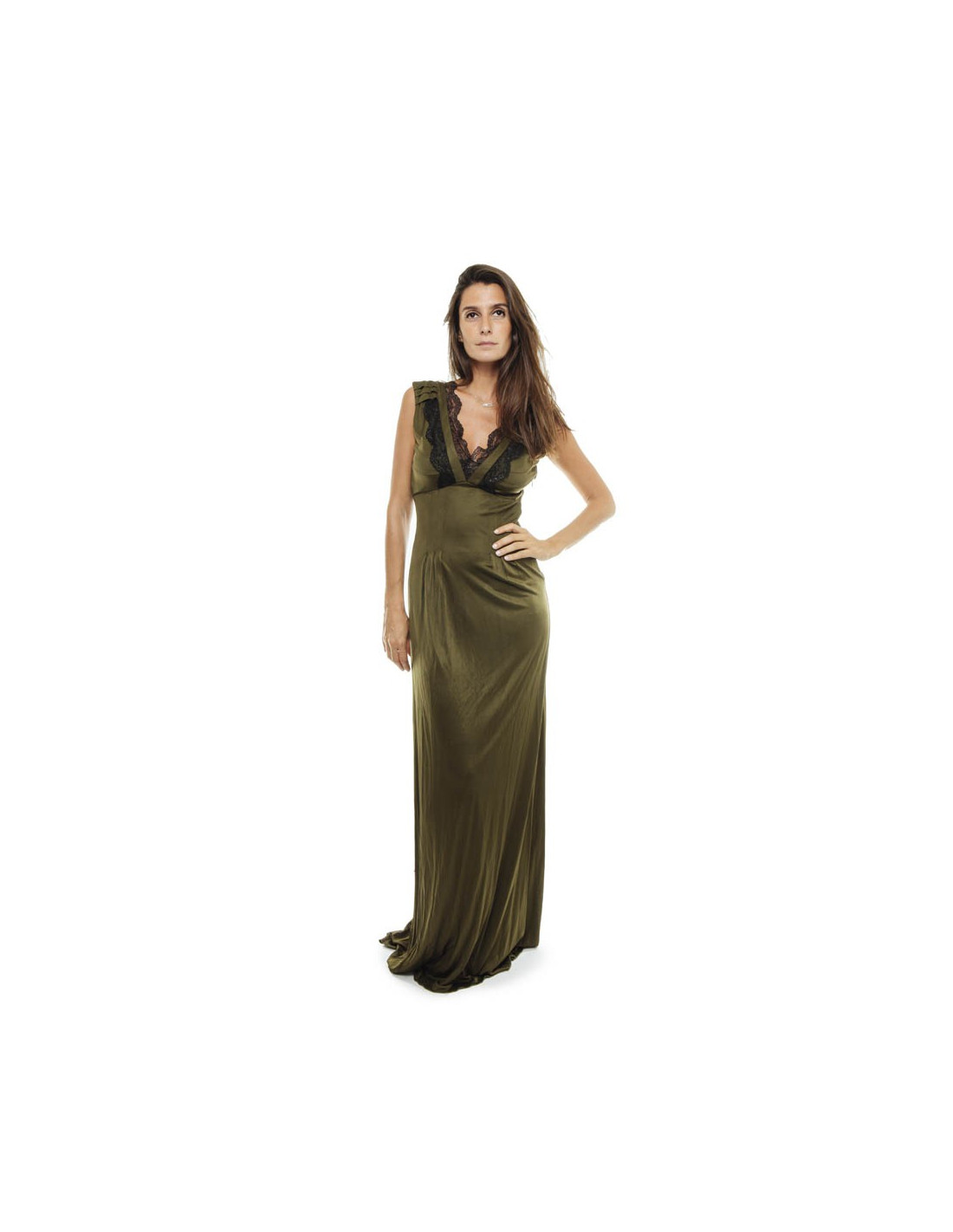 CHRISTIAN LACROIX soft evening own in khaki green satin viscose Size 40FR