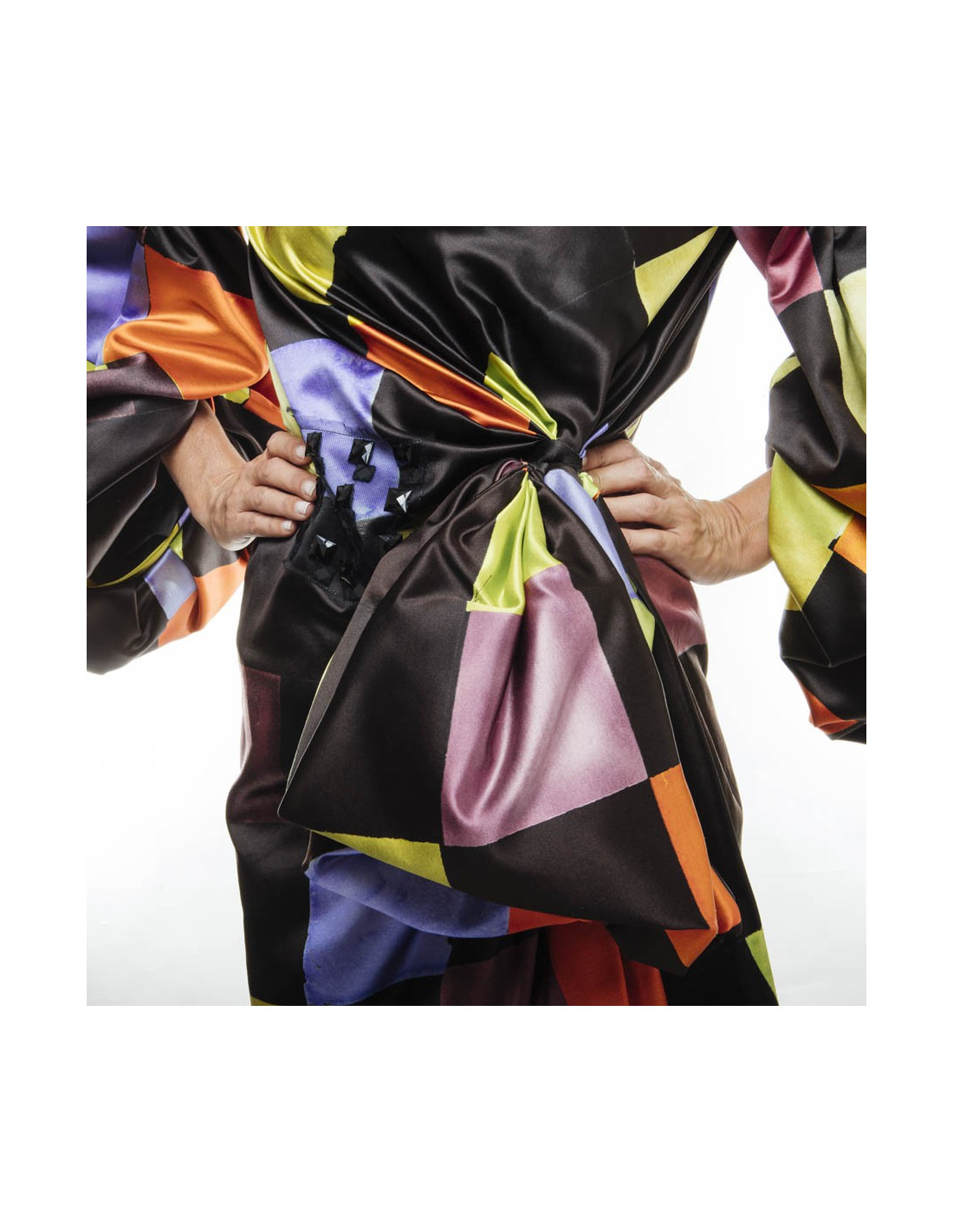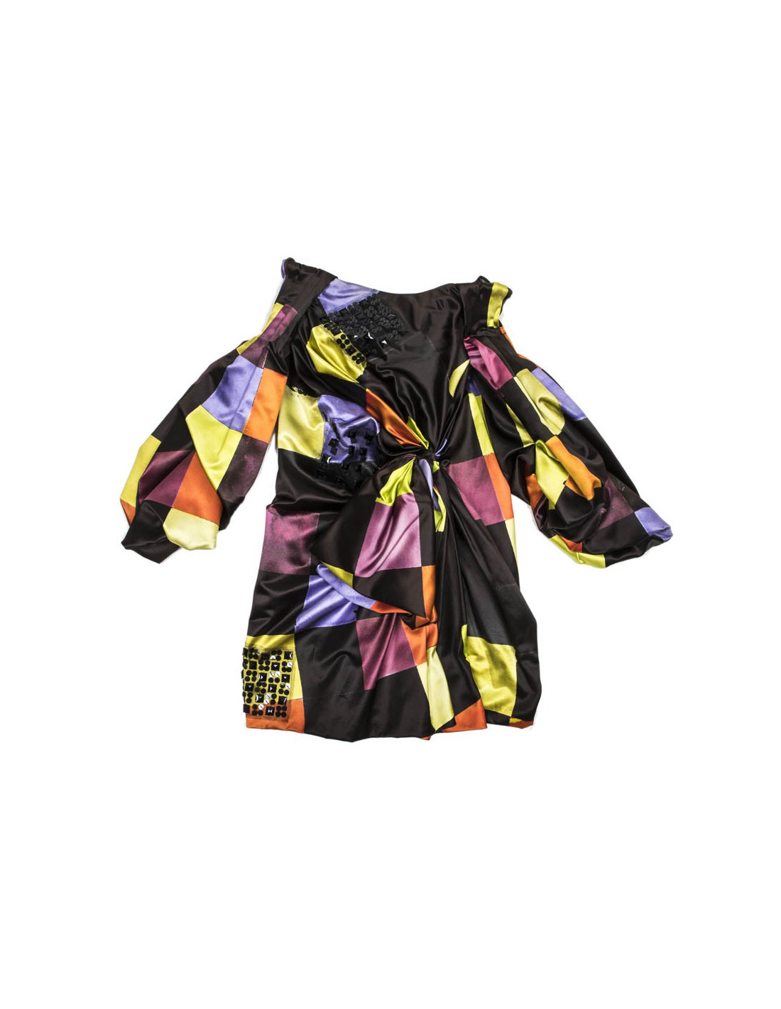 CHRISTIAN LACROIX couture dress in multicolored satins size36