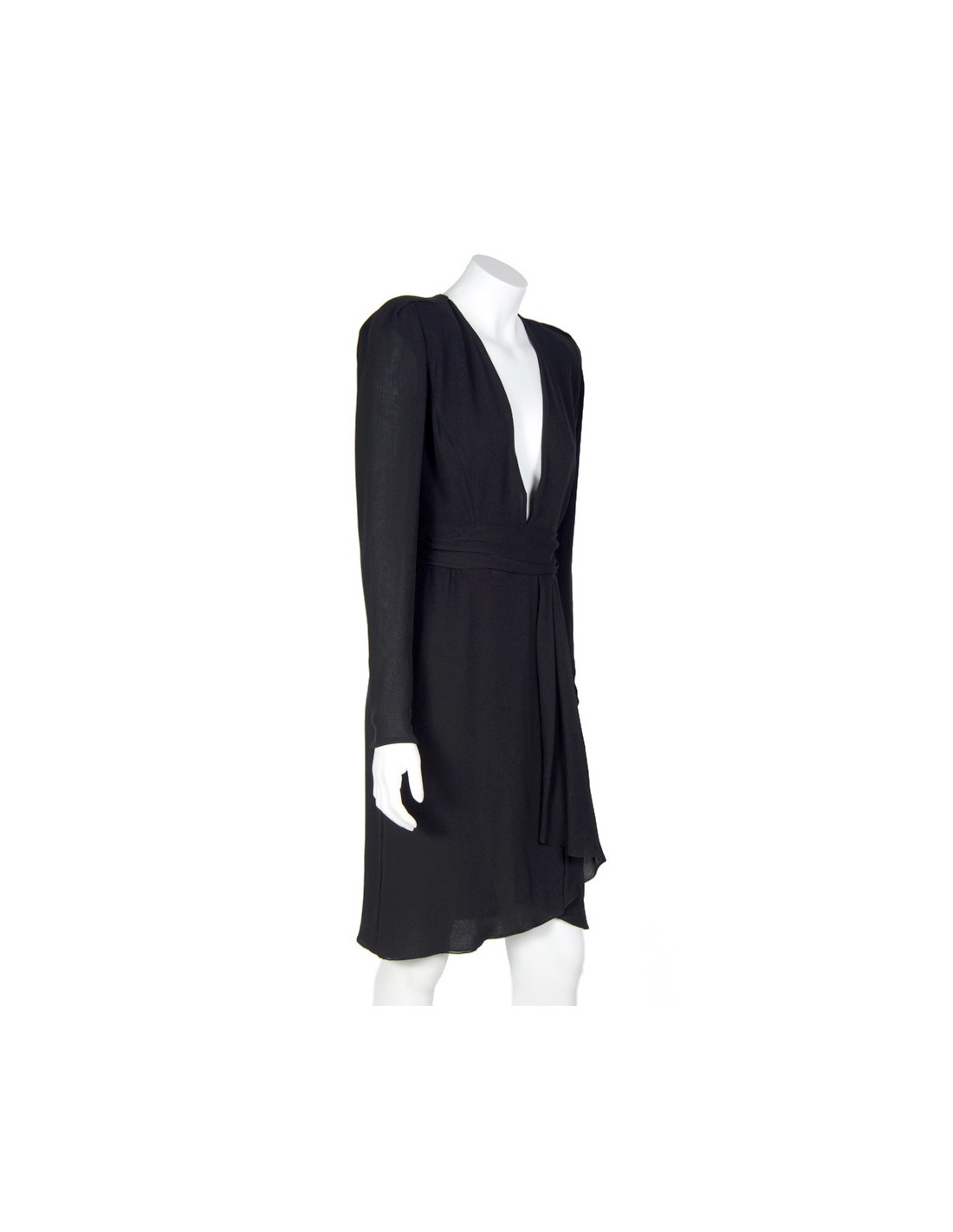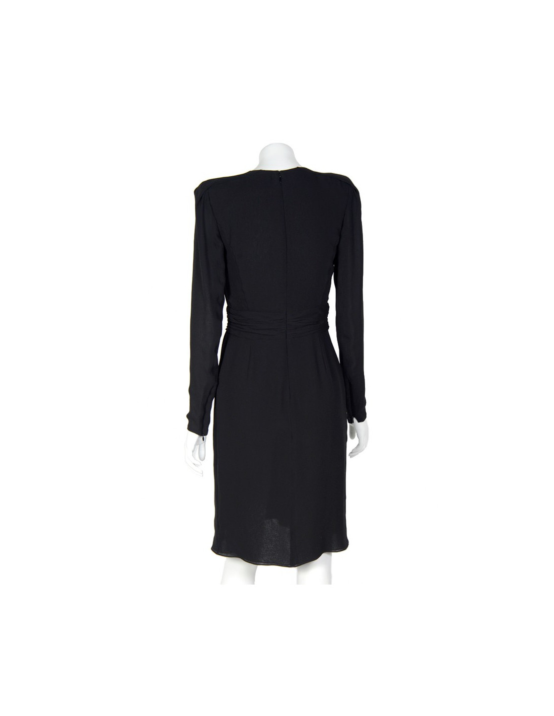 Evening dress long sleeves, Guy Laroche, black chiffon. Size 38. Col V. belt with gathers. The lower part of the dress's portfolio. Zipper in the back as well as on the end of the sleeves. Epaulettes. In very good condition.