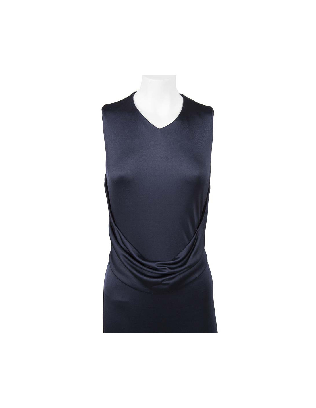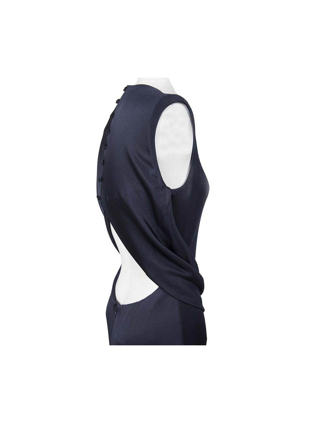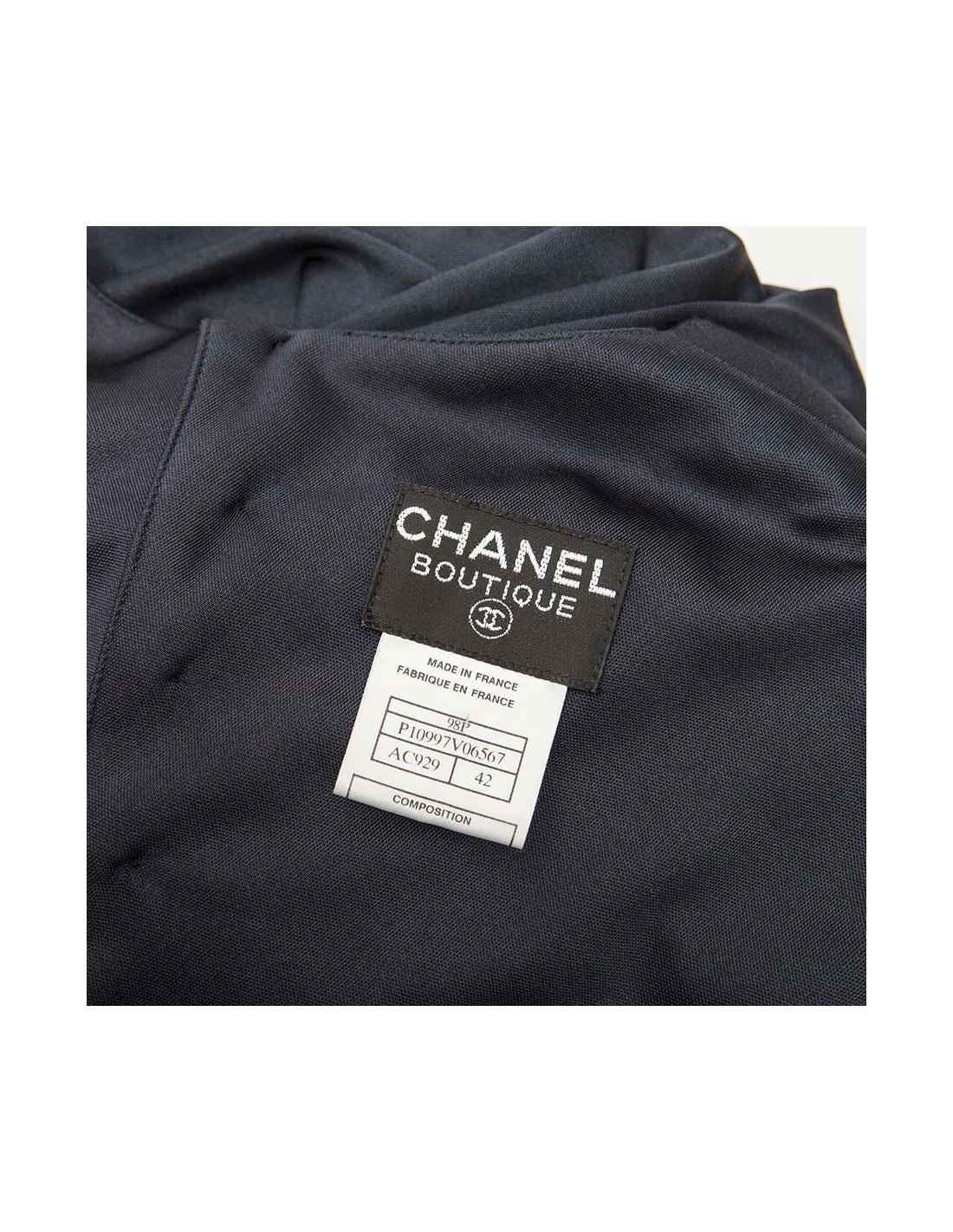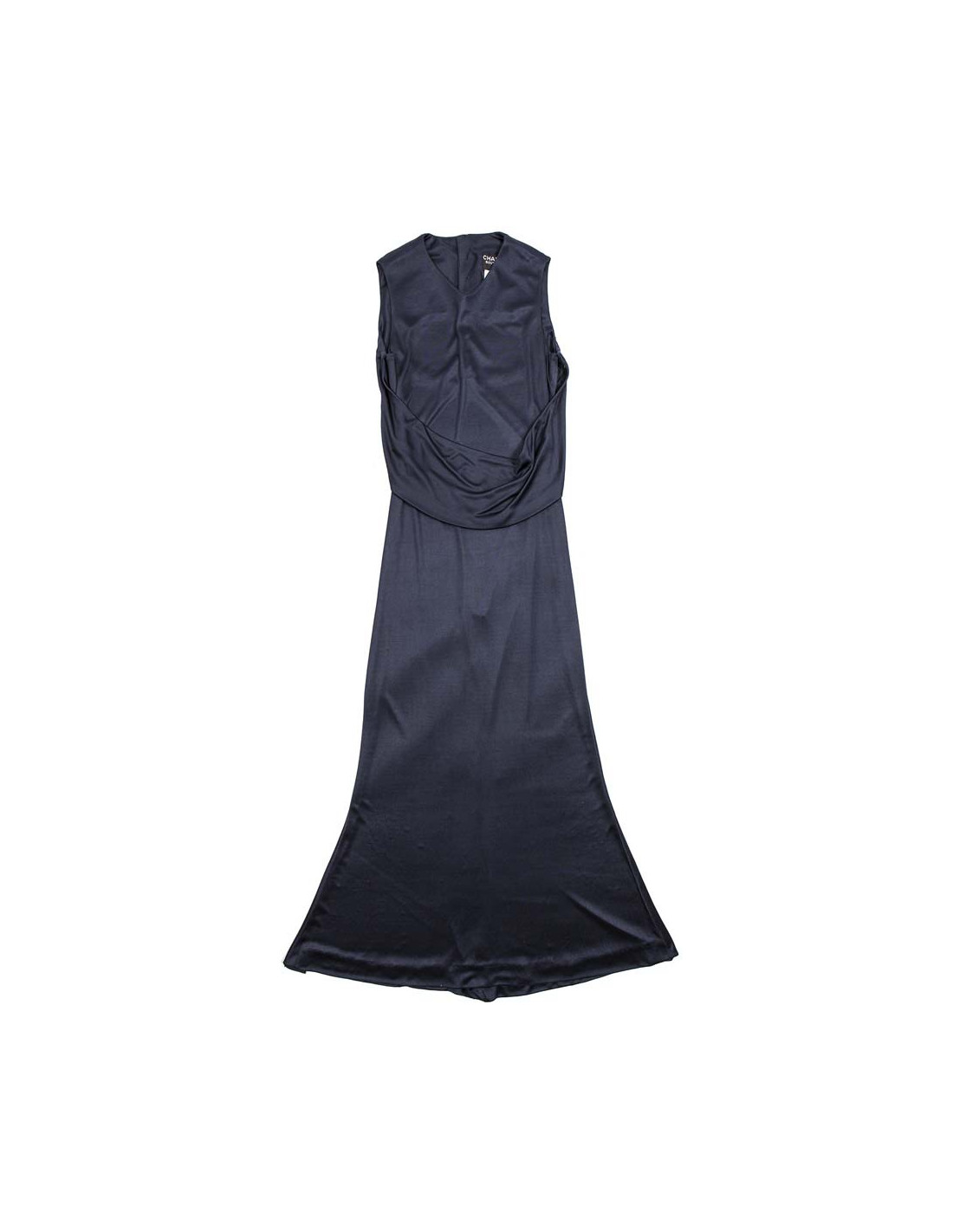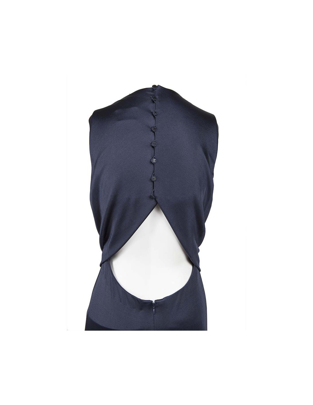 Très élégante robe du soir Chanel bleu marine, avec dos nu. 100% polyamide. Taille 42