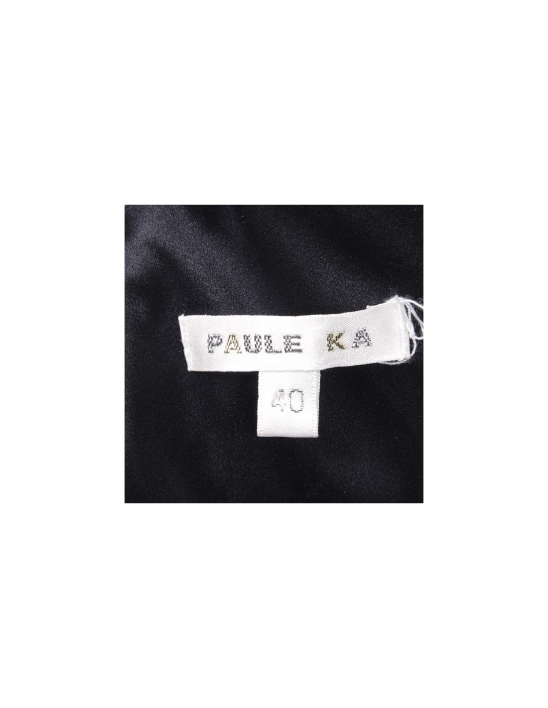 Robe élégante et actuelle Paule Ka, taille 40/36 FR, en matière synthétique noire et doublée d'un tulle rigide. En très bon état.