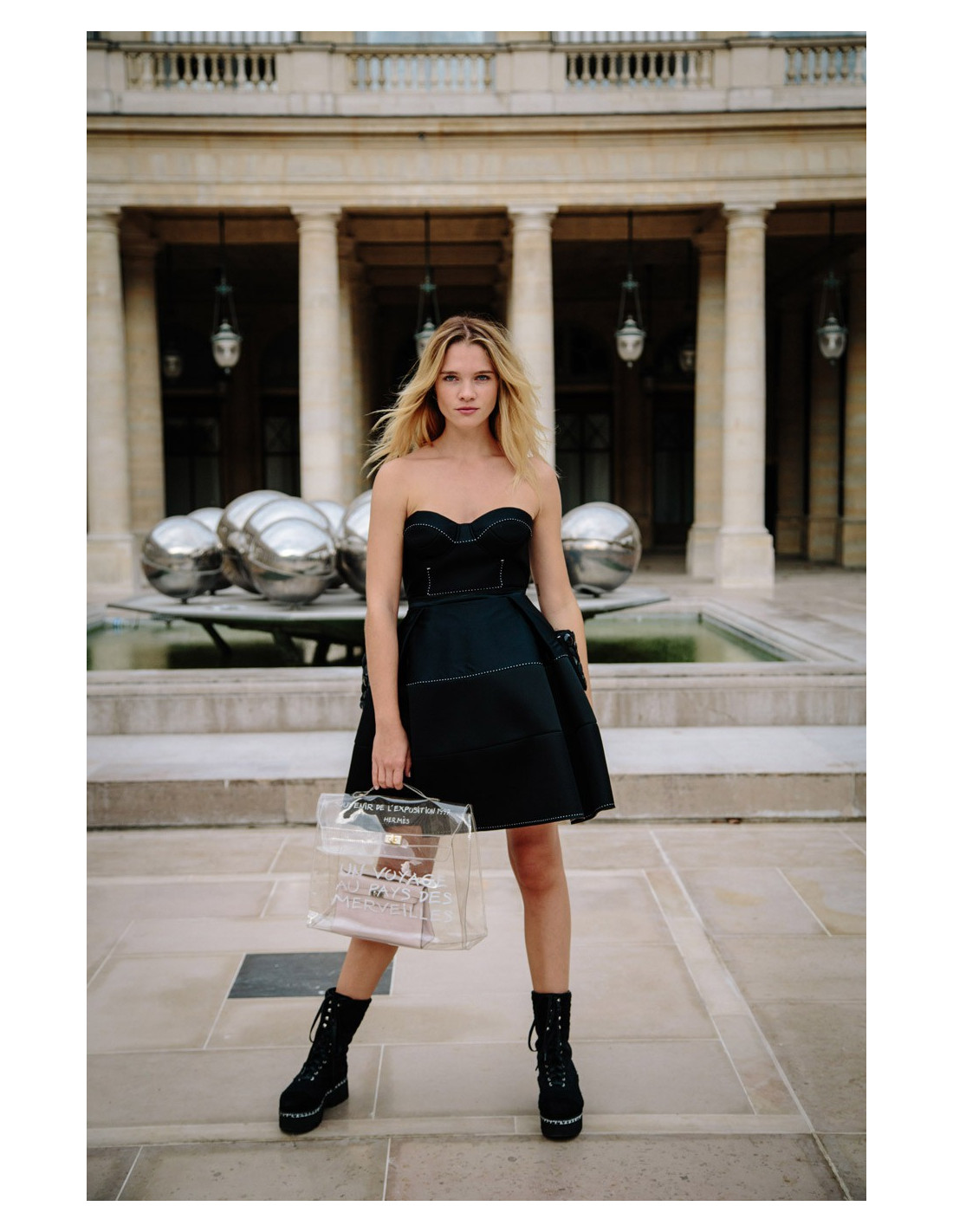 hauteur totale 69 cm, ampleur du bas de 136 cm.