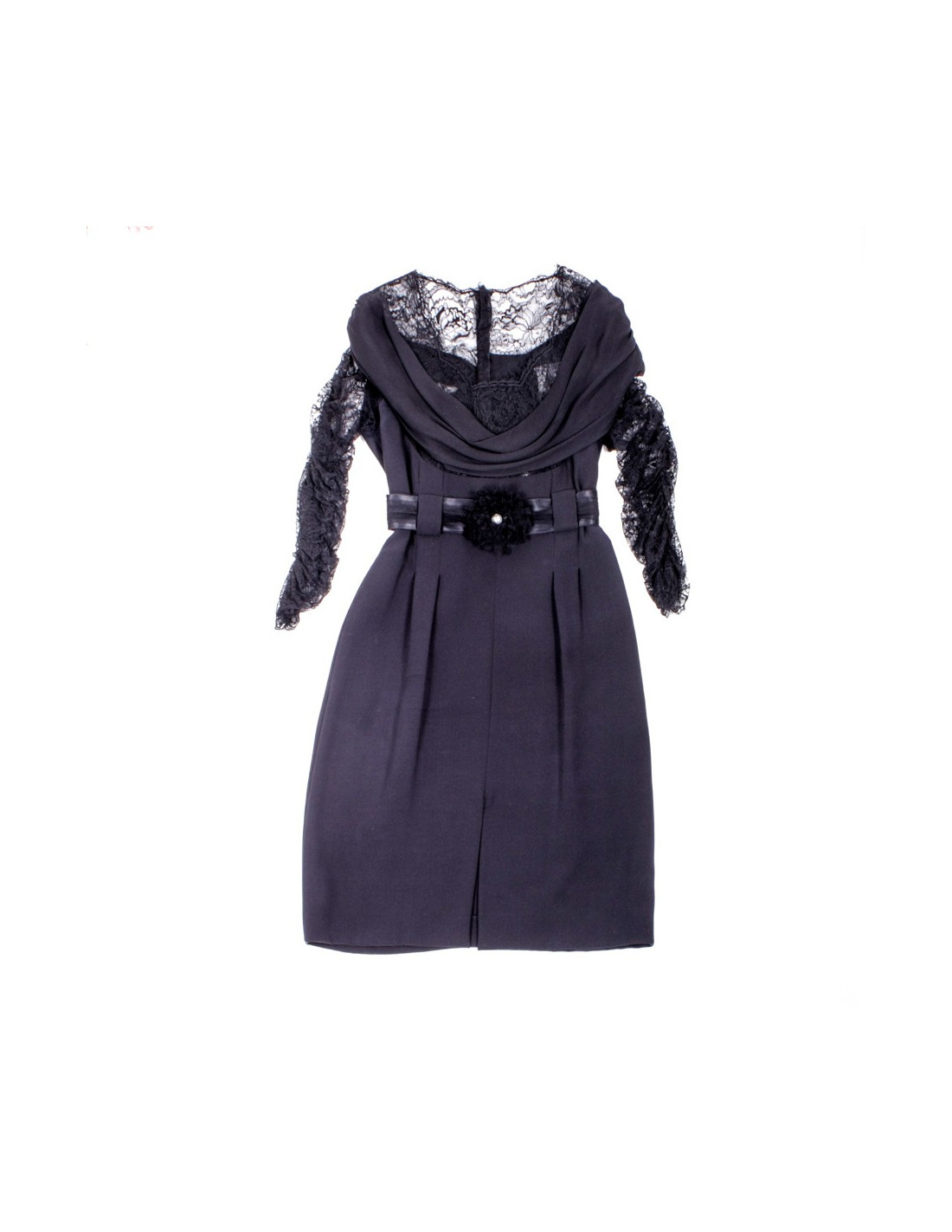 Superb black CHANEL dress in silk and lace chantilly that closes in the back with a lovely buttons