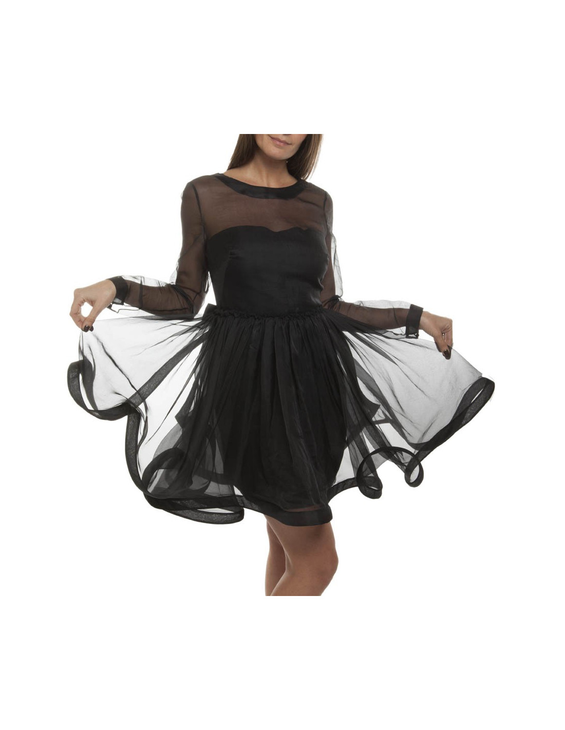 Flat dimensions: width shoulders 36 cm. size 34 cm, length of sleeves 61 cm, size of the bottom (skirt in wool) 51 cm, size of the part in organza approx 230 cm.