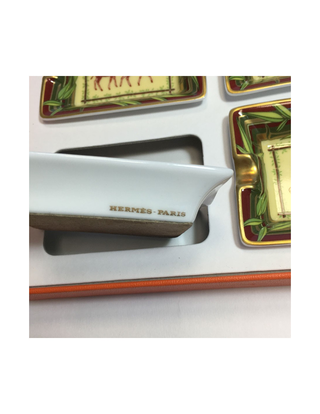 HERMES set of 4 mini ashtrays in white porcelain with animal pattern