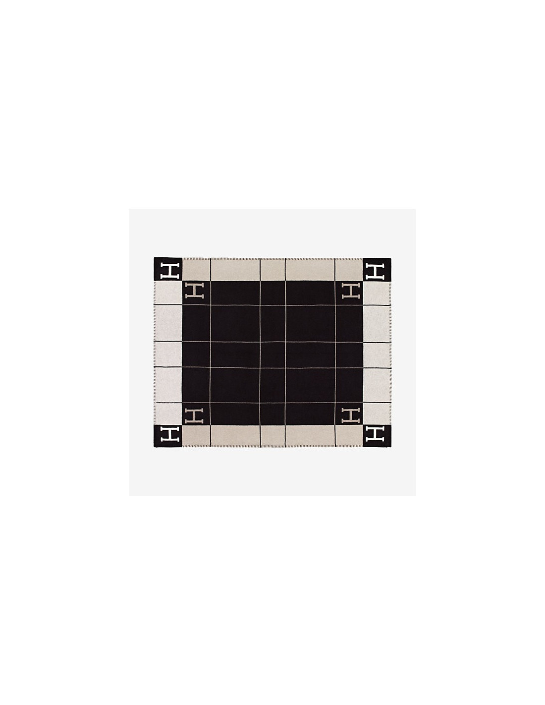 HERMÈS Avalon III throw blanket in écru and black merino wool and cashmere