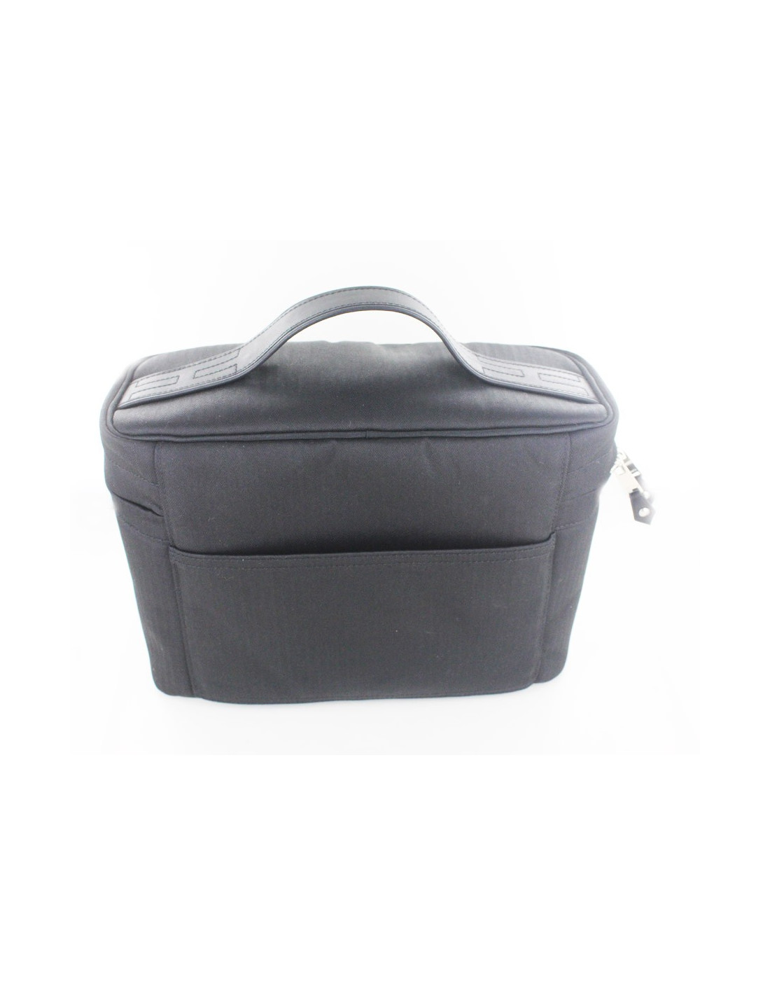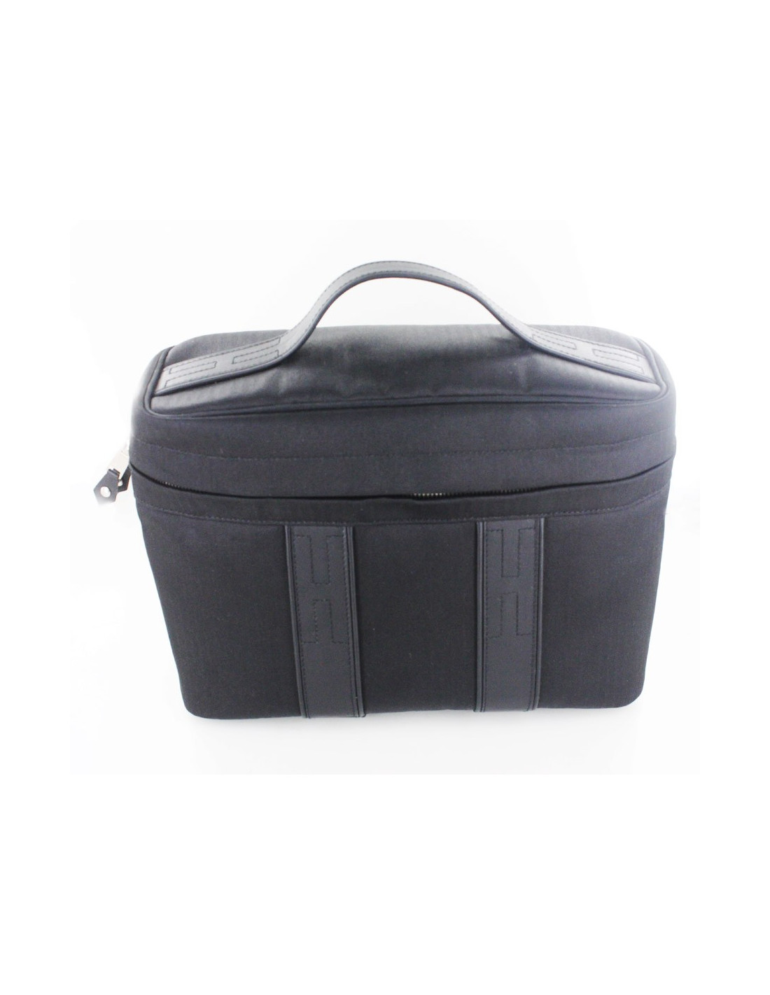 Make-up bag HERMES Black canvas to rafters and black leather ever used. Made in France, this superb Kit toAmjad has never been used. It opens with a closing slide. Its interior space is large, there is a main pocket and two pockets zipped, which one below the hat. The buckle on the back of the kit to fix it on the tow handle of a suitcase with wheels for easy travel. The Cove and leather bands are topstitched discreetly of the "H" of the House. Size: 31 x 22 x 12 cm, The handle length: 18 cm