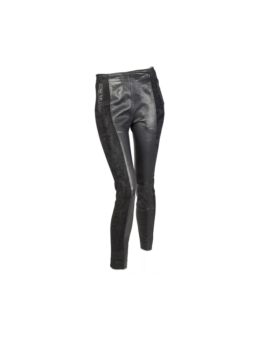 Zipper on the side. Size 34. cutting cigarette. The top and crotch are lambskin leather and suede outside. In very good condition.