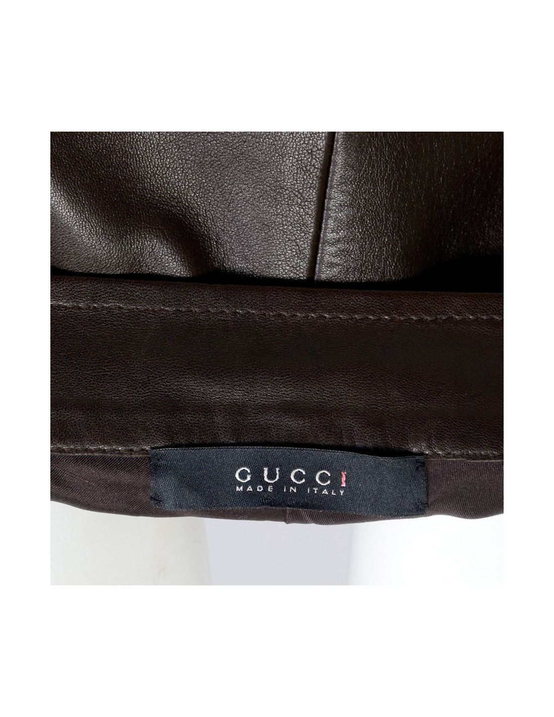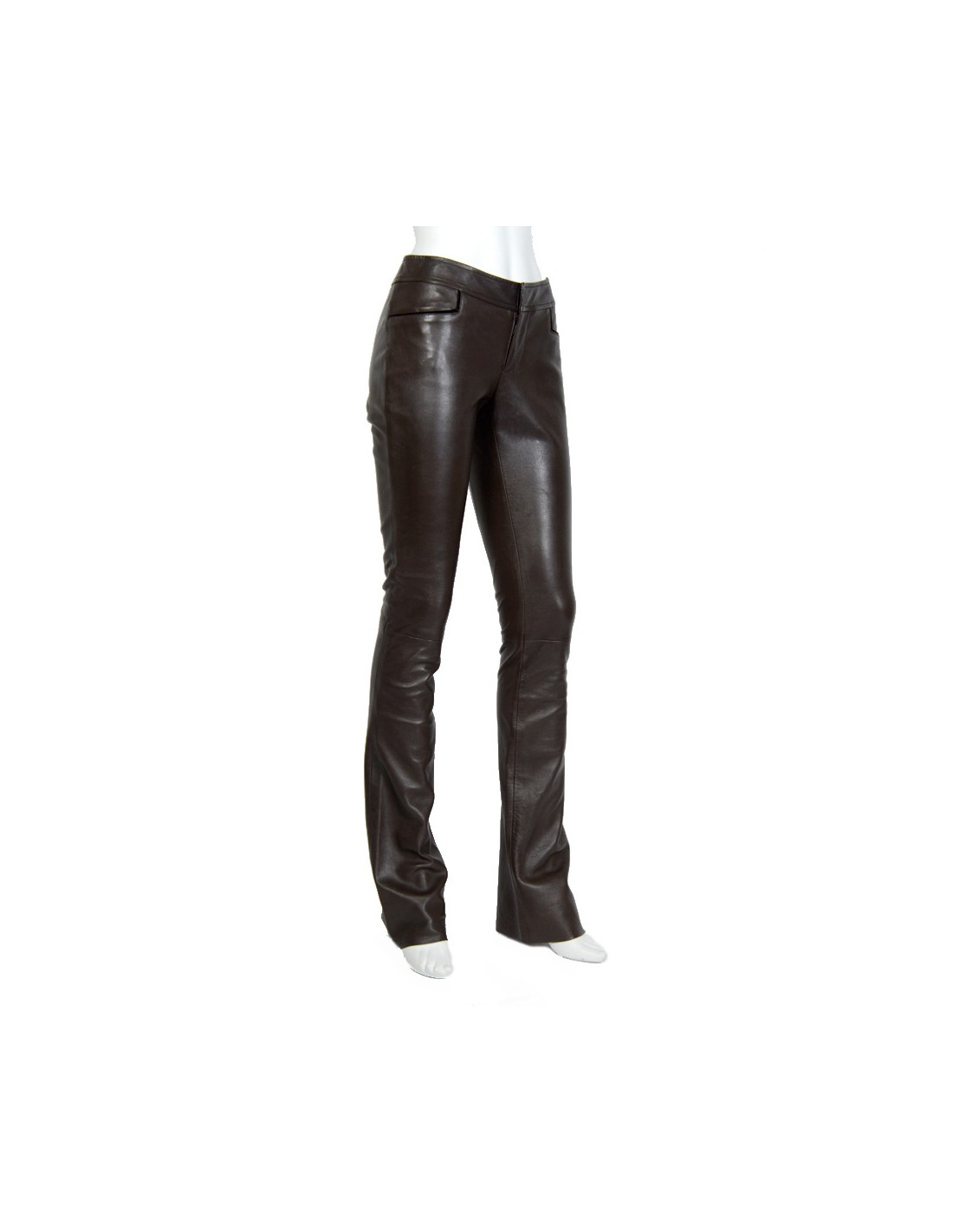Brown lambskin Gucci pants. Inner lining in Brown canvas. A flat pocket on each side with borders in velvet. Cut legs of elephants. No size tag, is equivalent to a 38. In very good condition.
