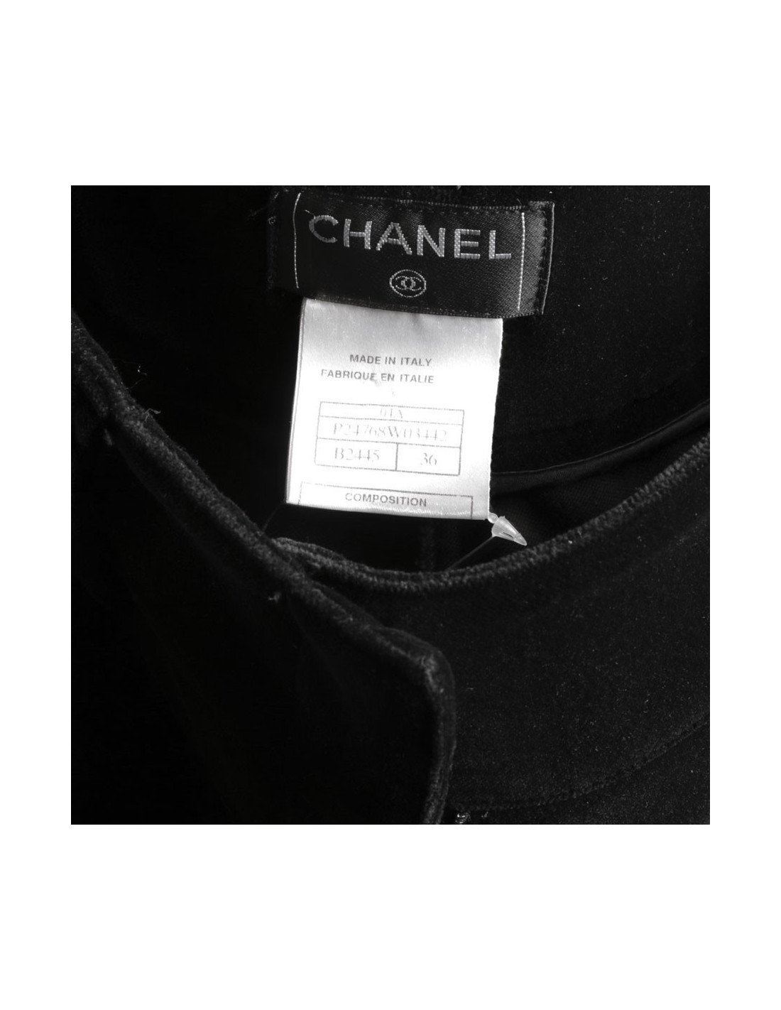 Chanel sublime pants hit cotton velvet black, from the ready-to-wear fall 2004. It is a size 36. The pants has three pockets on the front, it closes with zipper and two buttons crochet. It is in very good condition. (sew up the CC logo at the top of the pants)