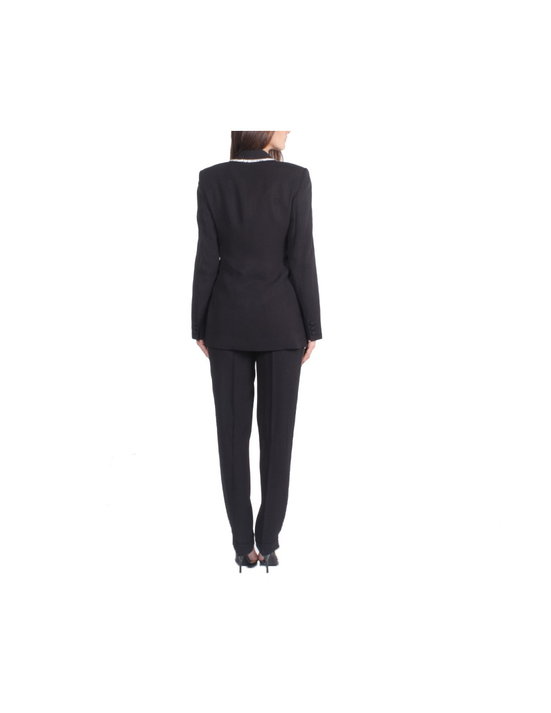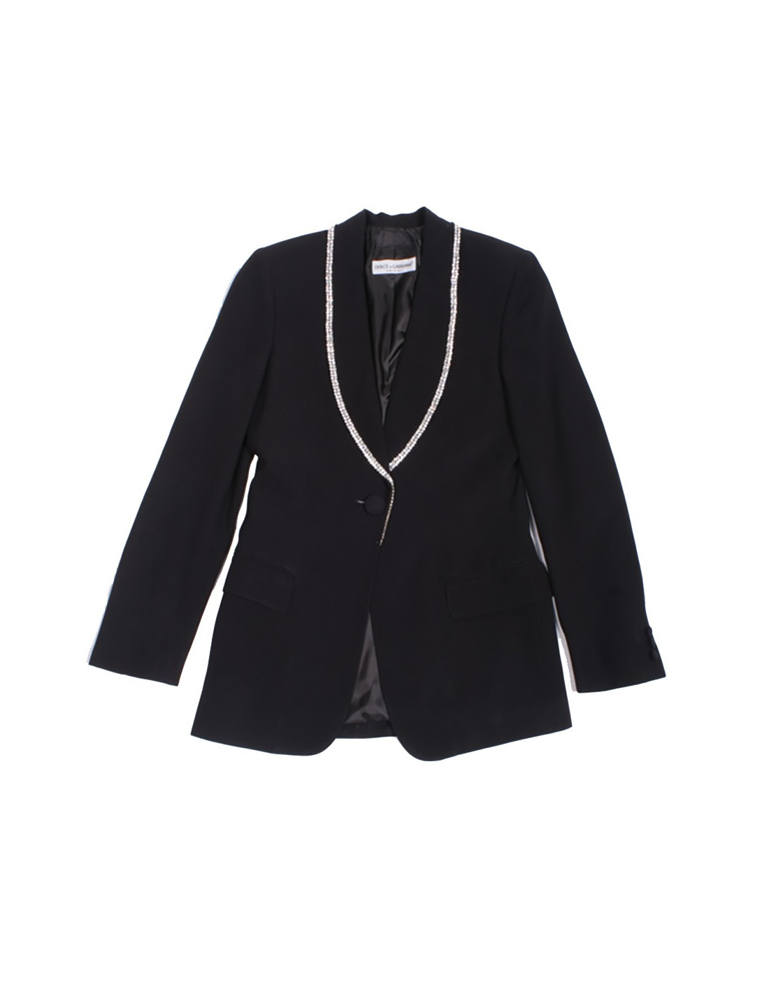 set of Smocking, Dolce & Gabbana, in very good condition black acetate and viscose shawl collar boarded to a Swarovski rhinestone edging.