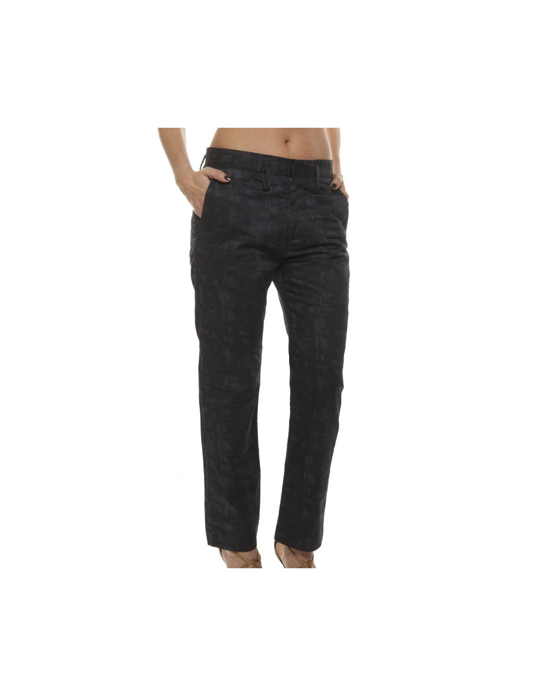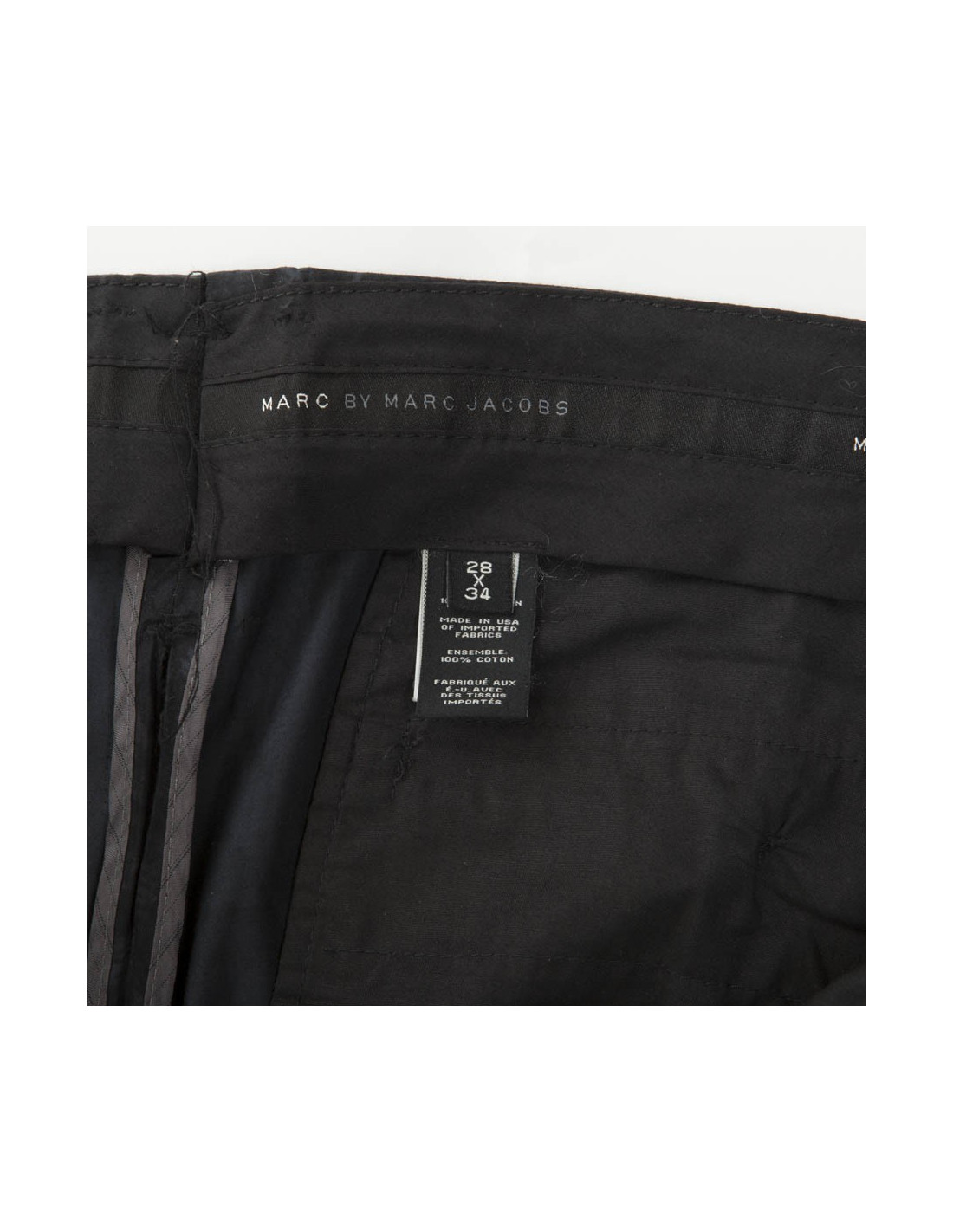 Trousers Marc Jacobs black cotton size 34. Straight cut trousers, discreet print. Contains two front pockets and two back pockets, buttoned, five belt loops and a closing before zipped and metal clip button.