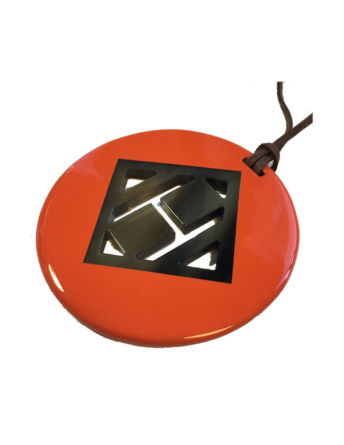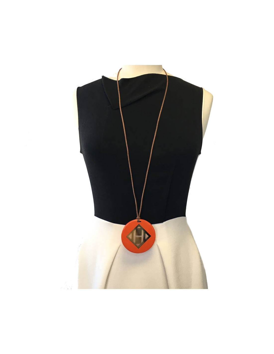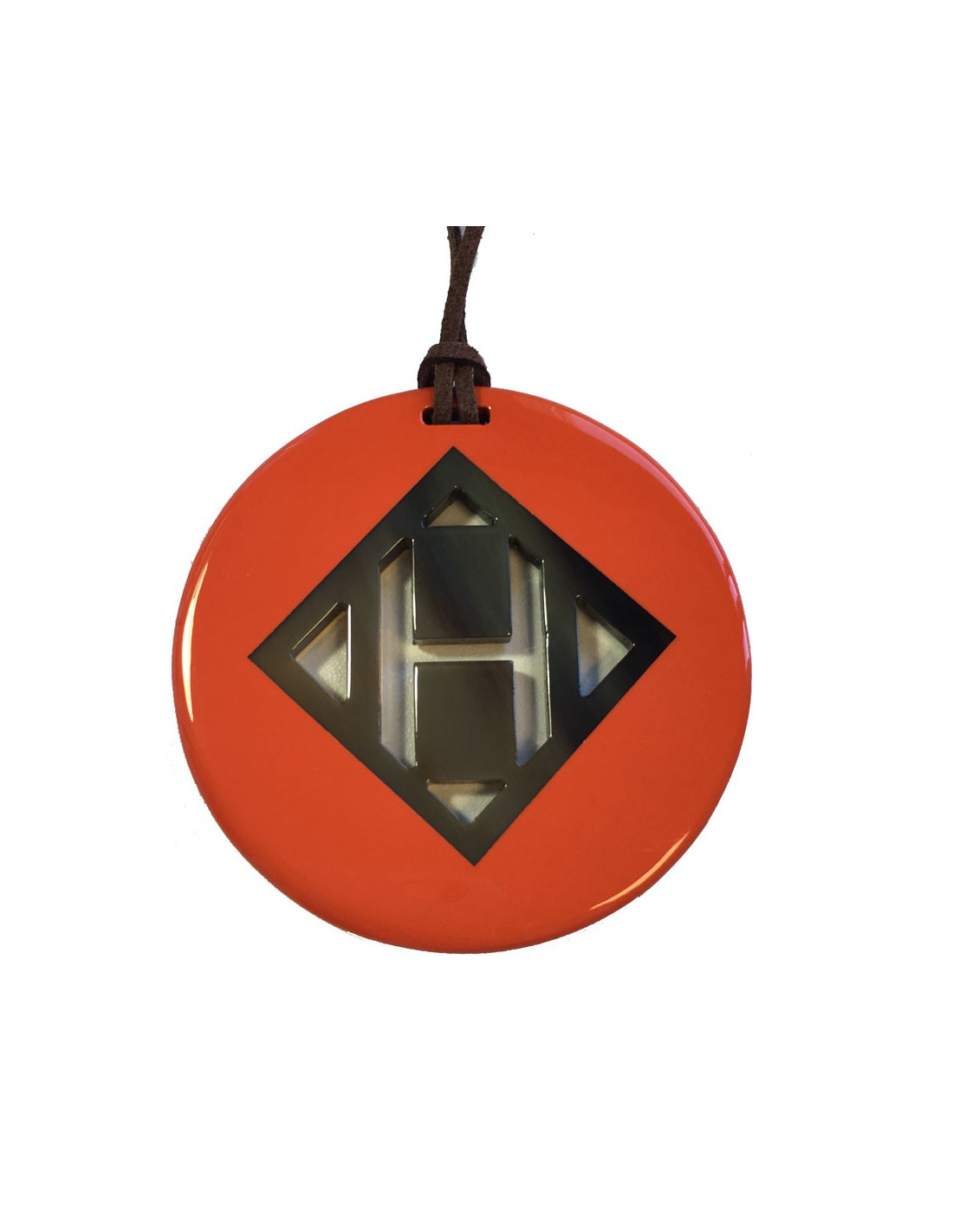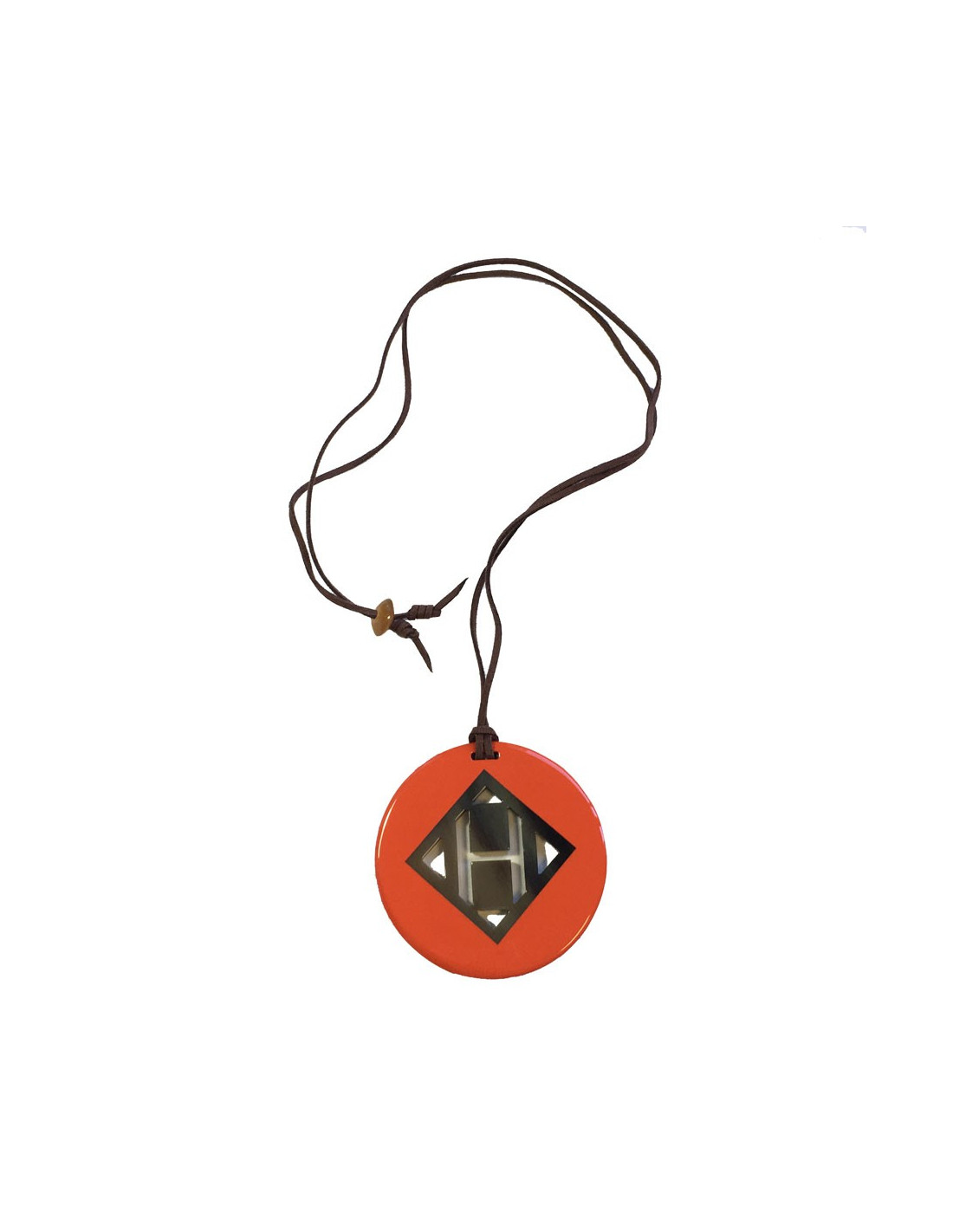 HERMÈS H round pendant in orange lacquered wood