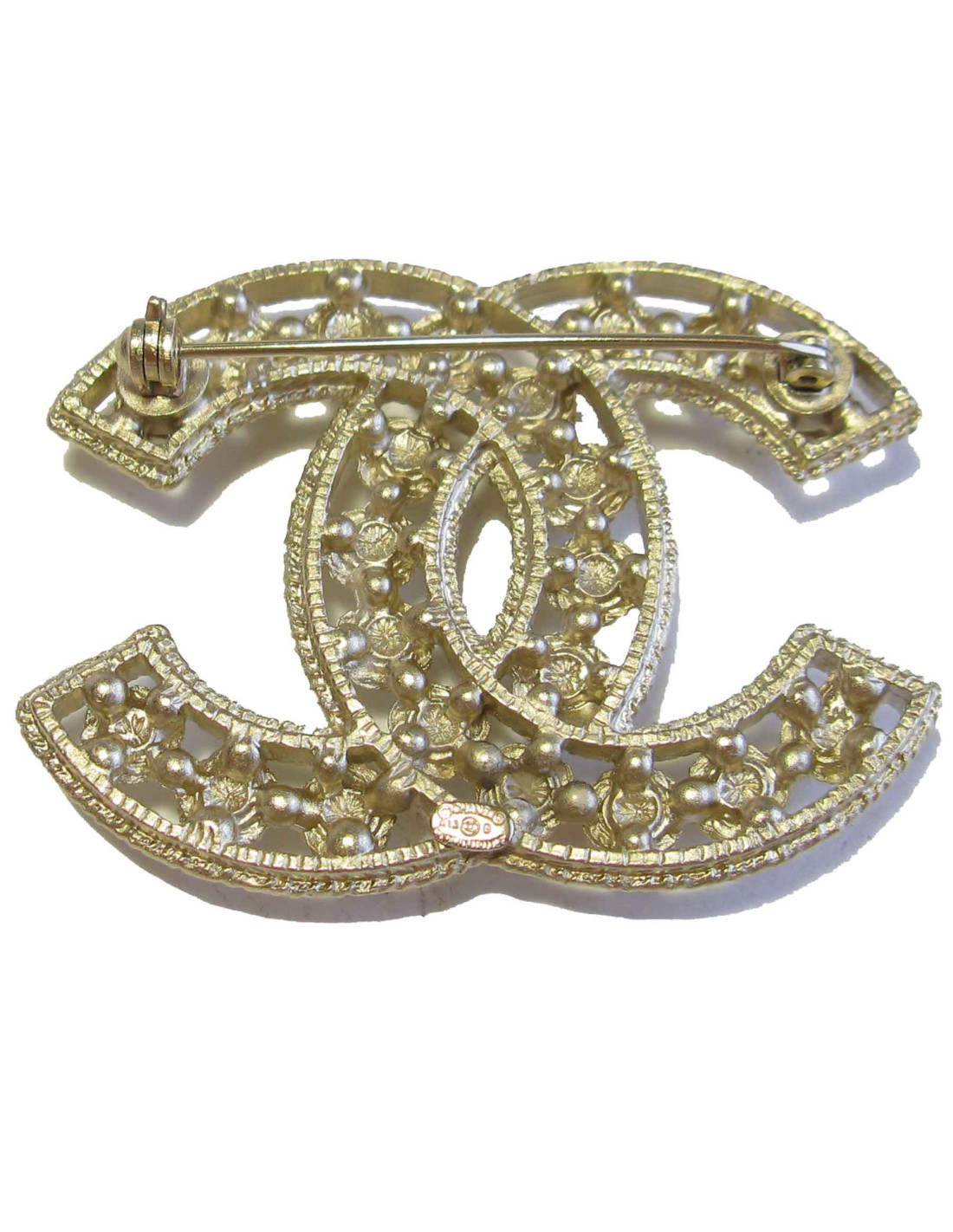 CHANEL CC Brooch in gilded metal set with pearl beads