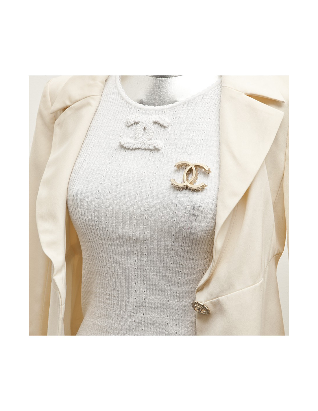 Last items in stock PINS-BROOCHES CHANEL brooch "C H A N E L" CHANEL 36233 3,900.00 € CHANEL brooch "C H A N E L" Condition : very goodMade in FranceMaterials : metal, rhinestonesColor : goldenMeasurements: the height of each brooch is 4 cmGolden finish metalDetails : the 6 brooches are pined independently. They can be pined in various ways on a dress, a jacket, a beret... Advantage Valois Vintage Paris : comes in its CHANEL dustbag and box Add to cart