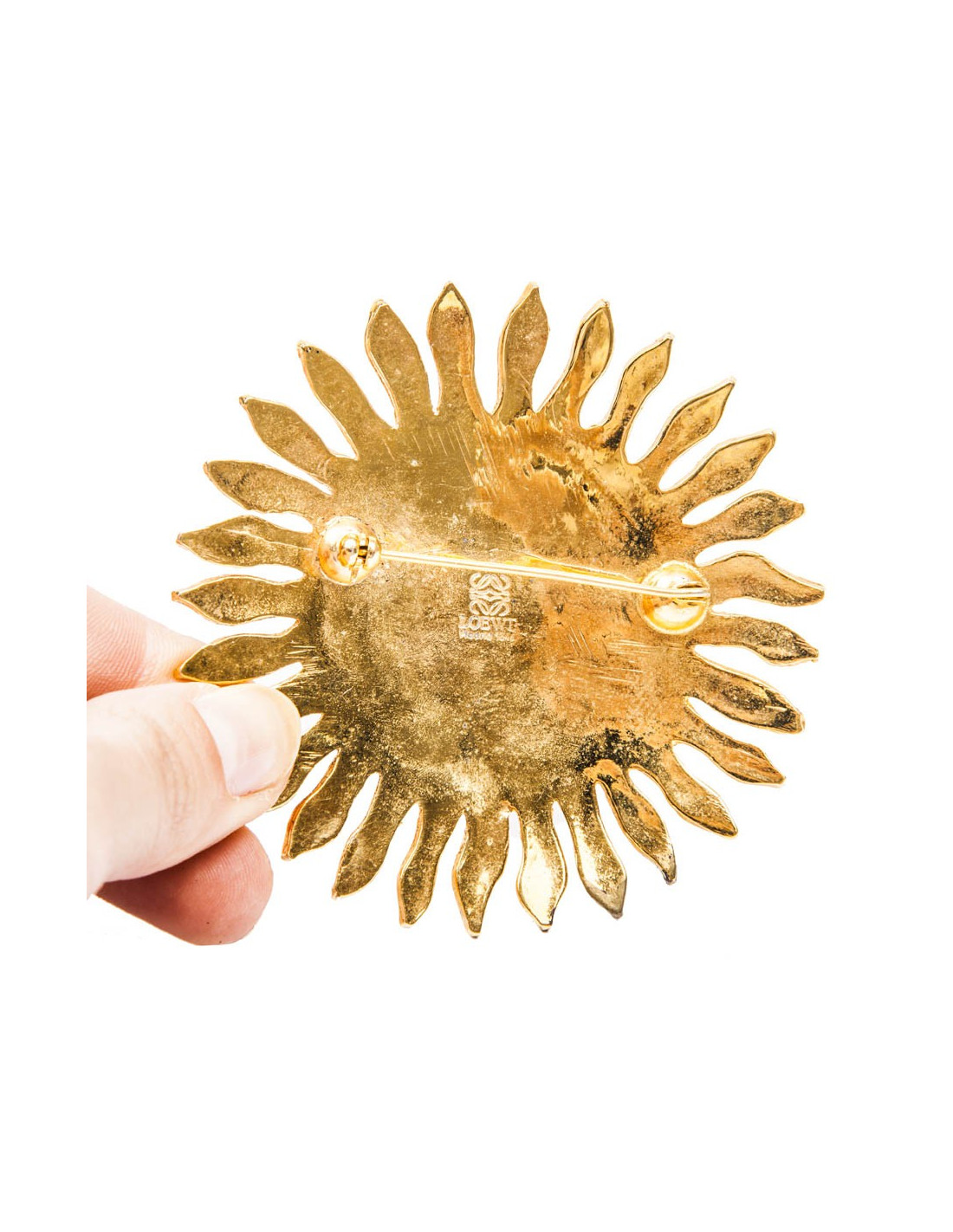 LOEWE Brooch sun shape in gilded metal and multicolored molten glass