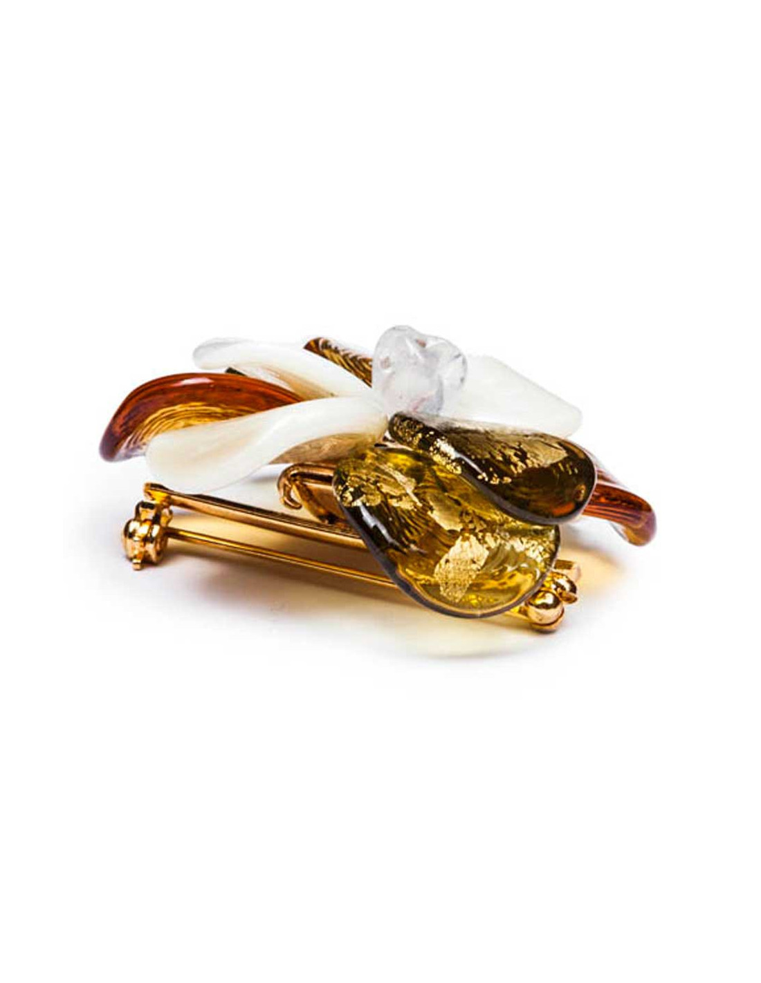 couture camellia brooch in tricolor molten glass