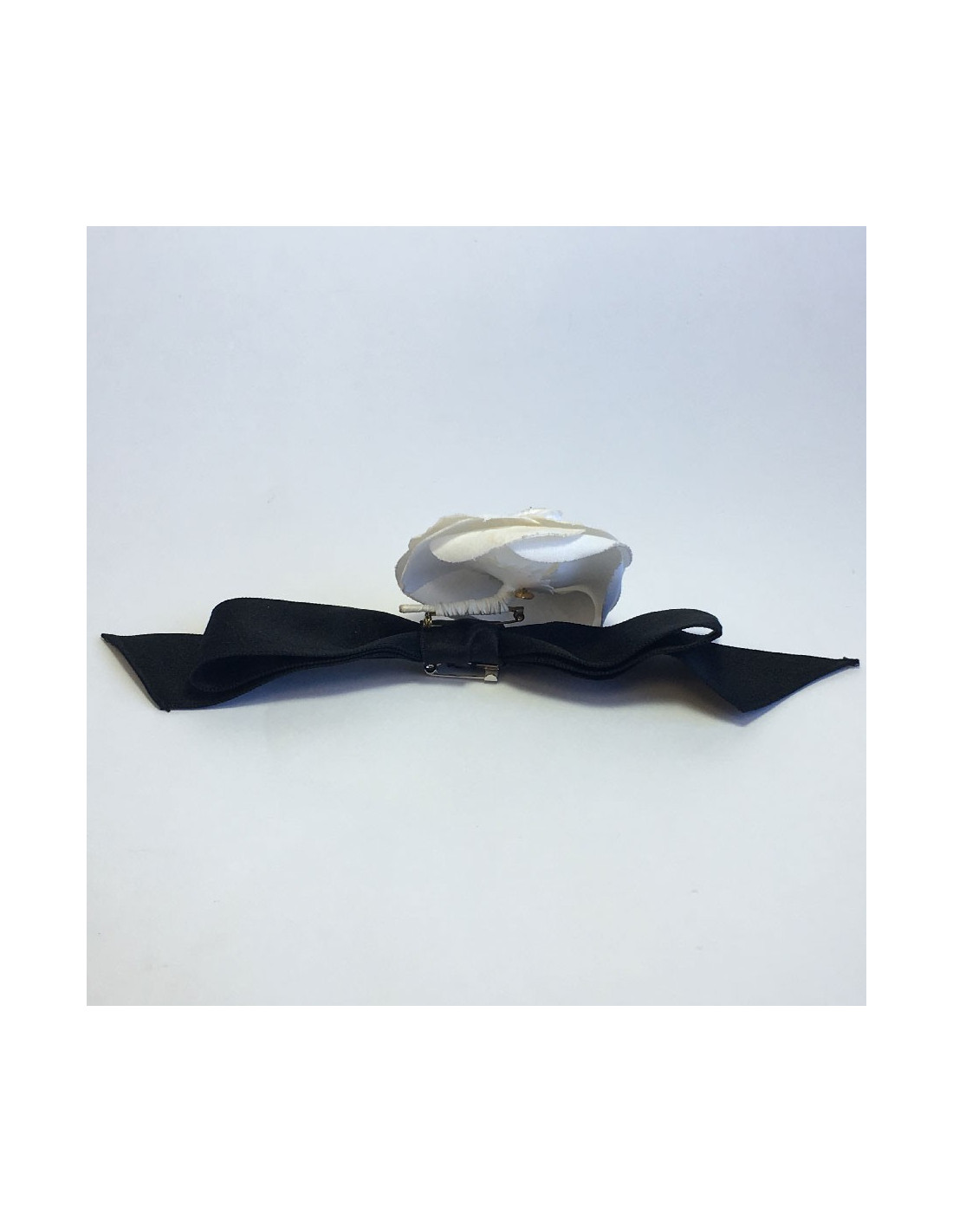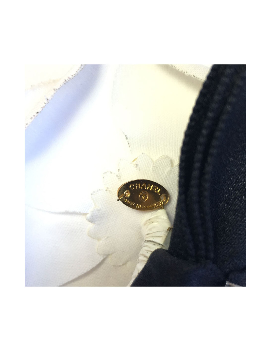 CHANEL camellia knot brooch in black and white fabric