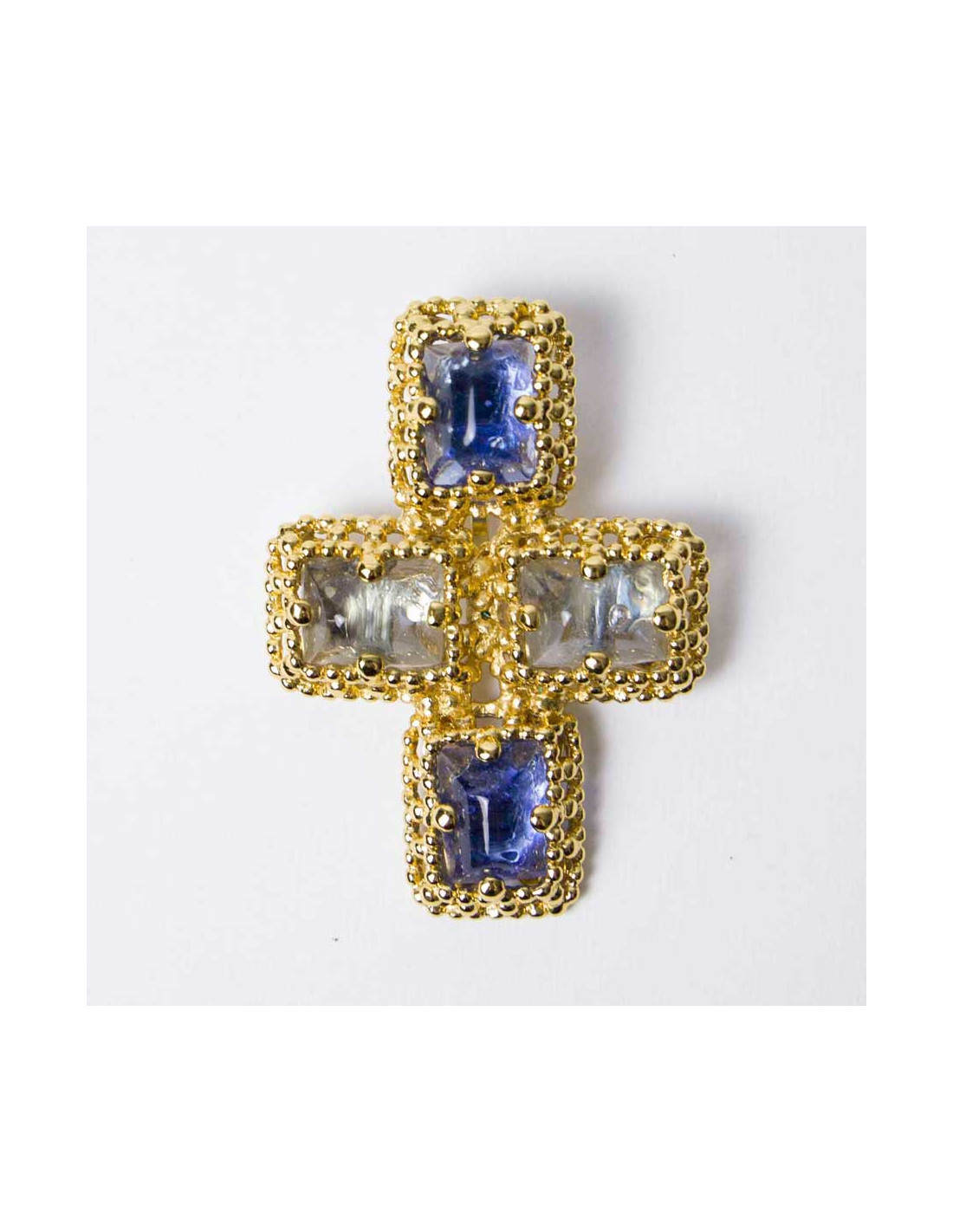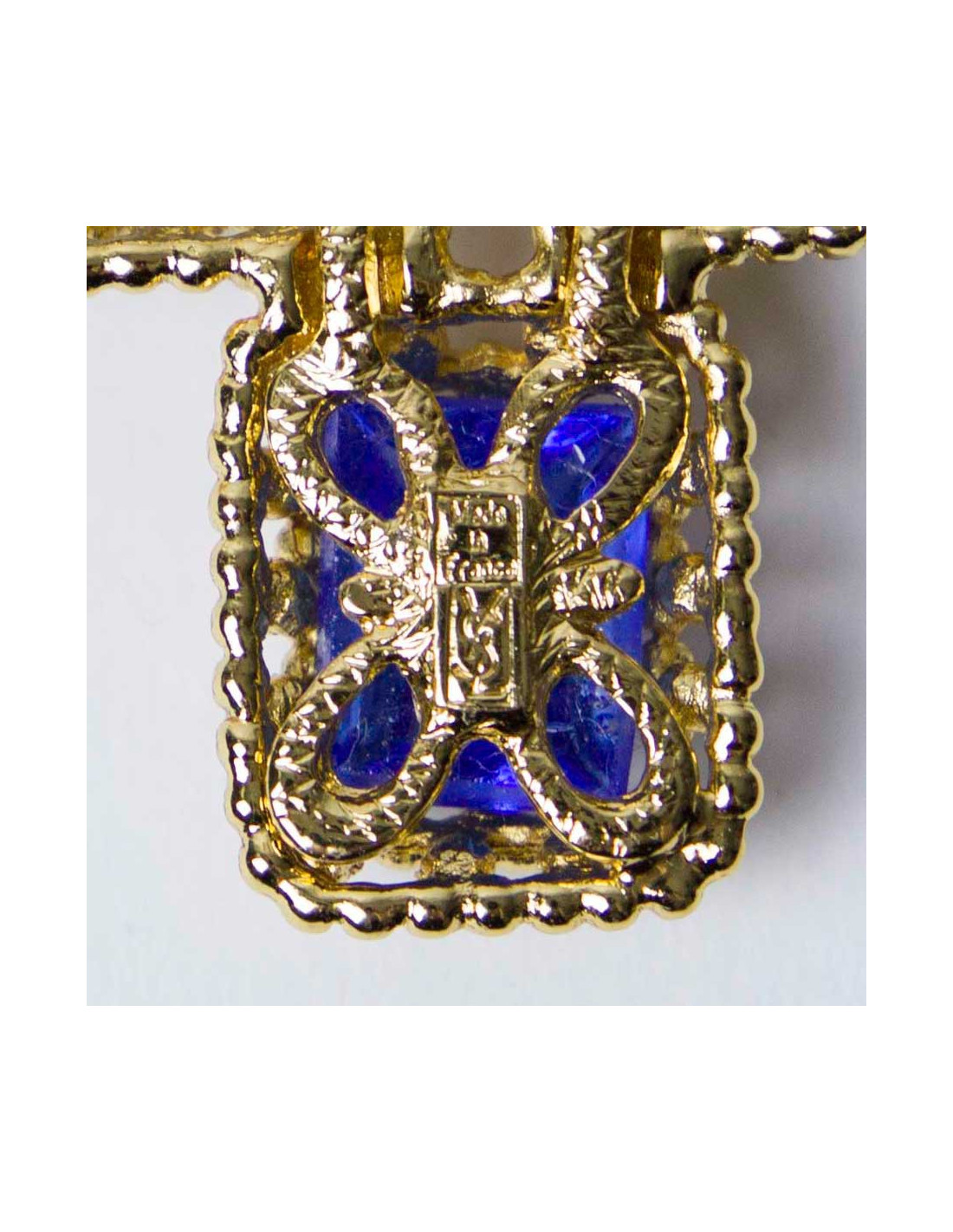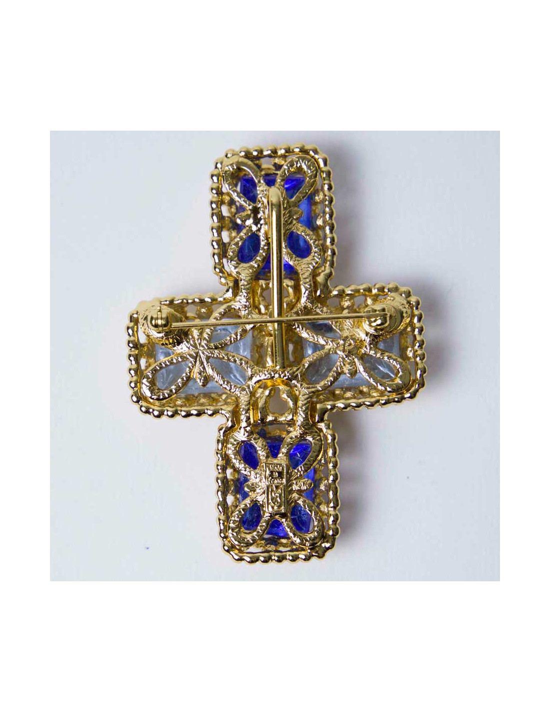 YSL YVES SAINT LAURENT Vintage cross pendant brooch set with 2 tones of blue cabochon
