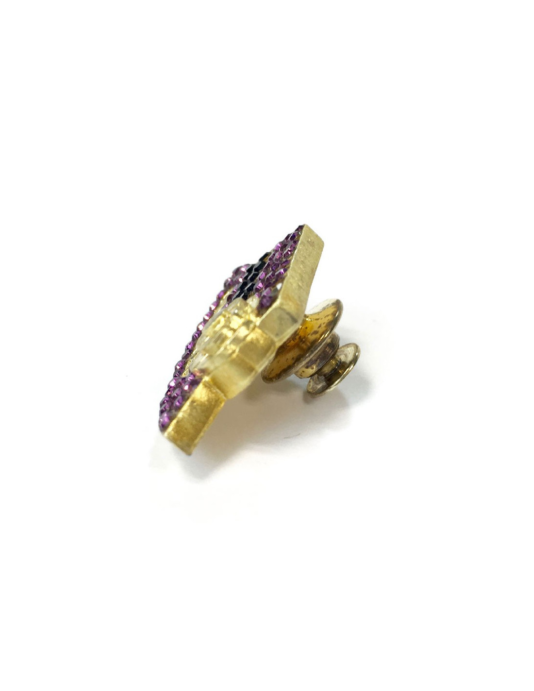 Sold PINS-BROOCHES YVES SAINT LAURENT YSL Vintage gilded brooch SAINT LAURENT 24384 230.00 € YVES SAINT LAURENT YSL Vintage gilded brooch Condition: very goodMade in FranceMaterials: metal, stonesColors: gold, purple, garnetMeasurements: 5.5x 4cmDetails: YSL Yves Saint Laurent brooch in gilded metal, set with garnet and violet fantasy stones. Delivered in a Valois Vintage Paris dustbag View