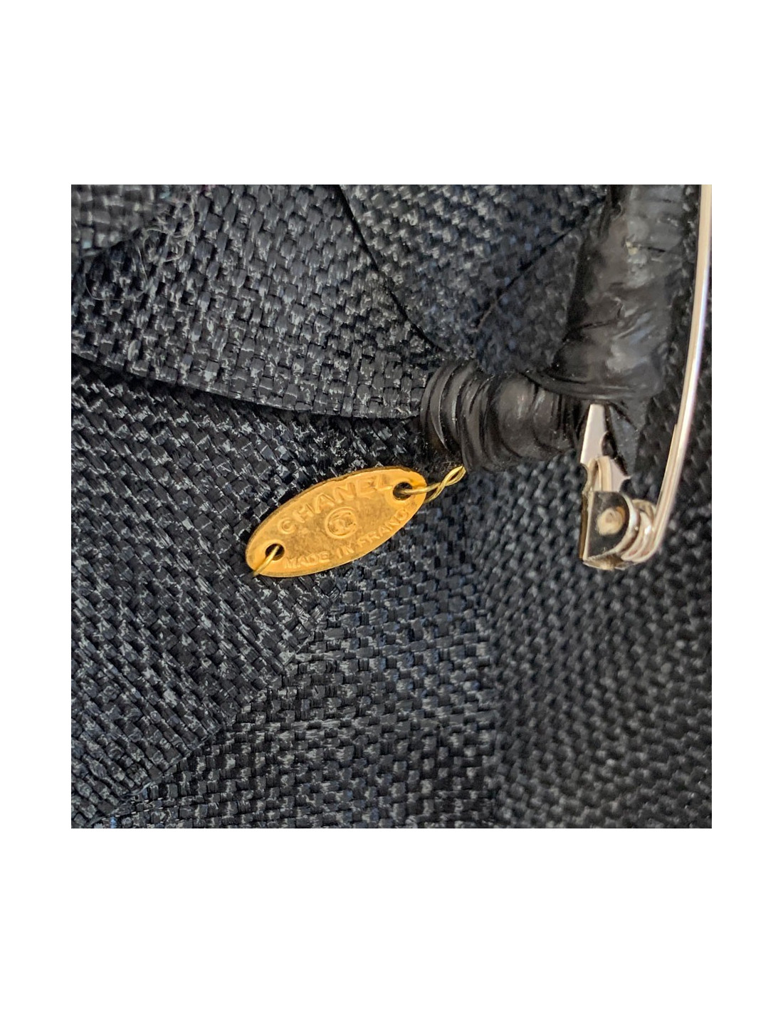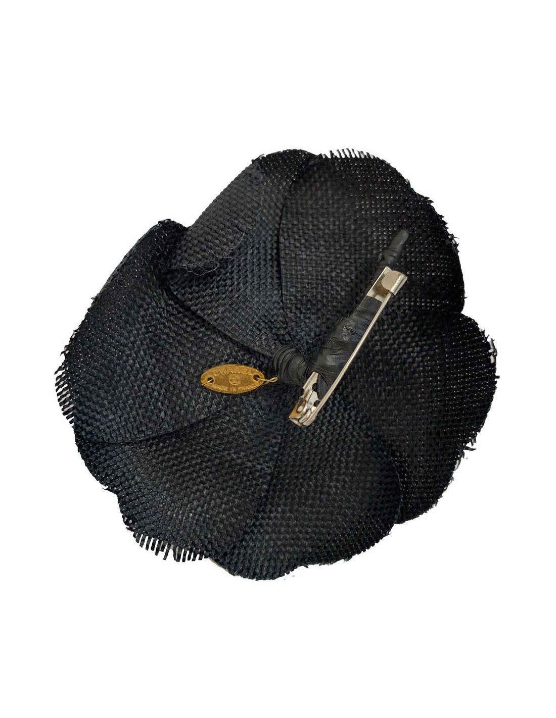 Last items in stock PINS-BROOCHES CHANEL sea-green cotton camellia brooch CHANEL 30861 210.00 € CHANEL cotton camellia brooch Condition :descent (needs to be cleaned)Made in FranceMaterial : cottonColors : sea-green, black, whiteMeasurements : 8 x 8 cmStamp : noHardware : gold finish metalDetails : petals made of padded cotton. fine black and white stripes Add to cart