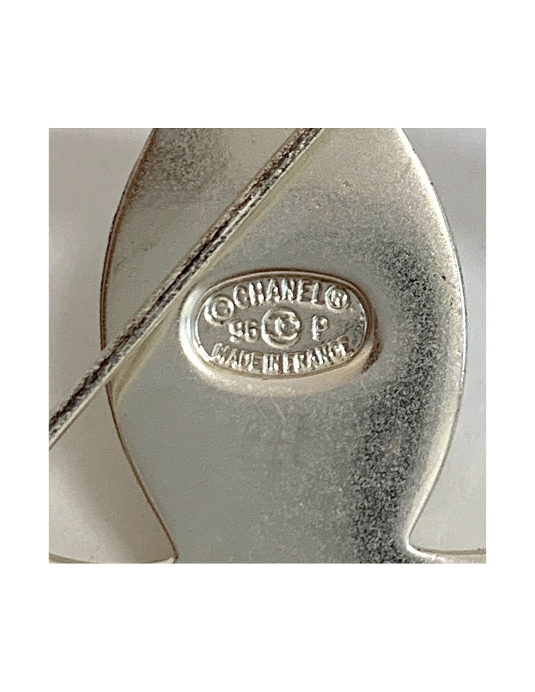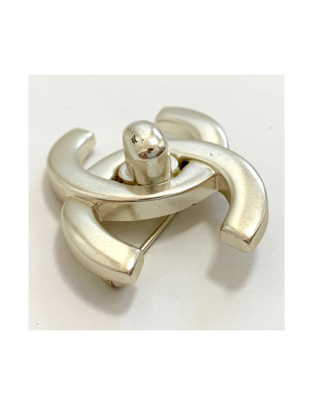 Last items in stock PINS-BROOCHES CHANEL vintage gilded brooch CHANEL 33275 1,790.00 € CHANEL vintage gilded brooch Condition : very goodMade in FranceMaterials : metal, molten glassColors : gold, whiteMeasurements : CC 2.5 x 1.8 cm, round pendant 3.6 x 3.6 cm, total height: 6.5 cmStamp : yesYear: Fall 1994Details : molten glass bead Add to cart