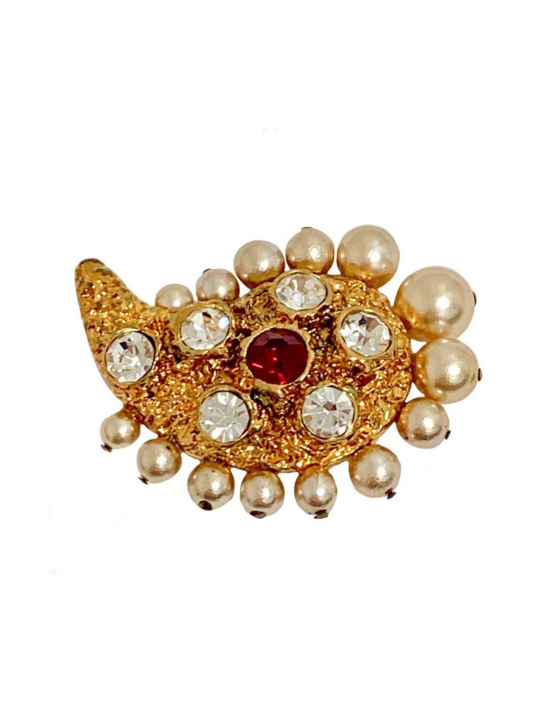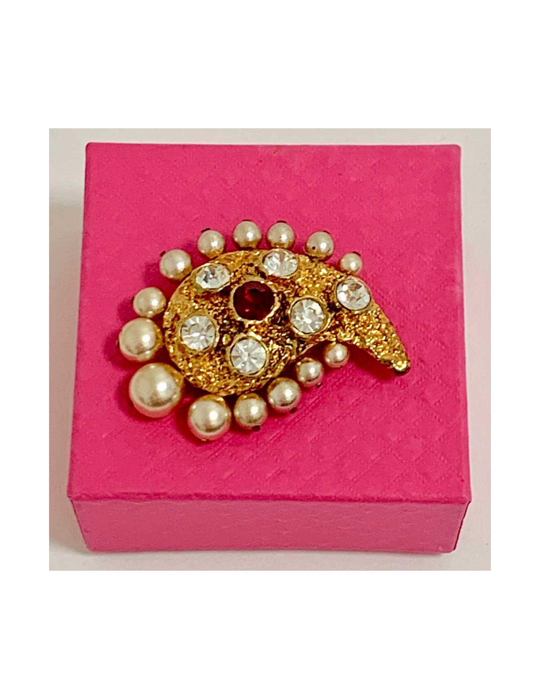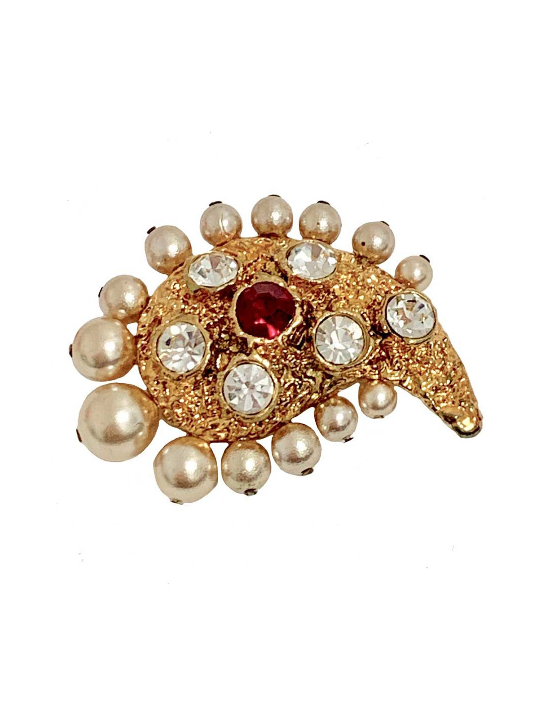 Sold PINS-BROOCHES Jean-Louis SCHERRER vintage brooch JEAN-LOUIS SCHERRER 19651 80.00 € Jean-Louis SCHERRER vintage brooch Jean-Louis SCHERRER vintage brooch in gold and mother-of-pearl and burgundy beads. In good condition. A few small oxidized places (see photo), not visible range. Stamp engraved on the back. Dimensions: 5 x 6 cm Delivered in a Valois Vintage Paris pouch View