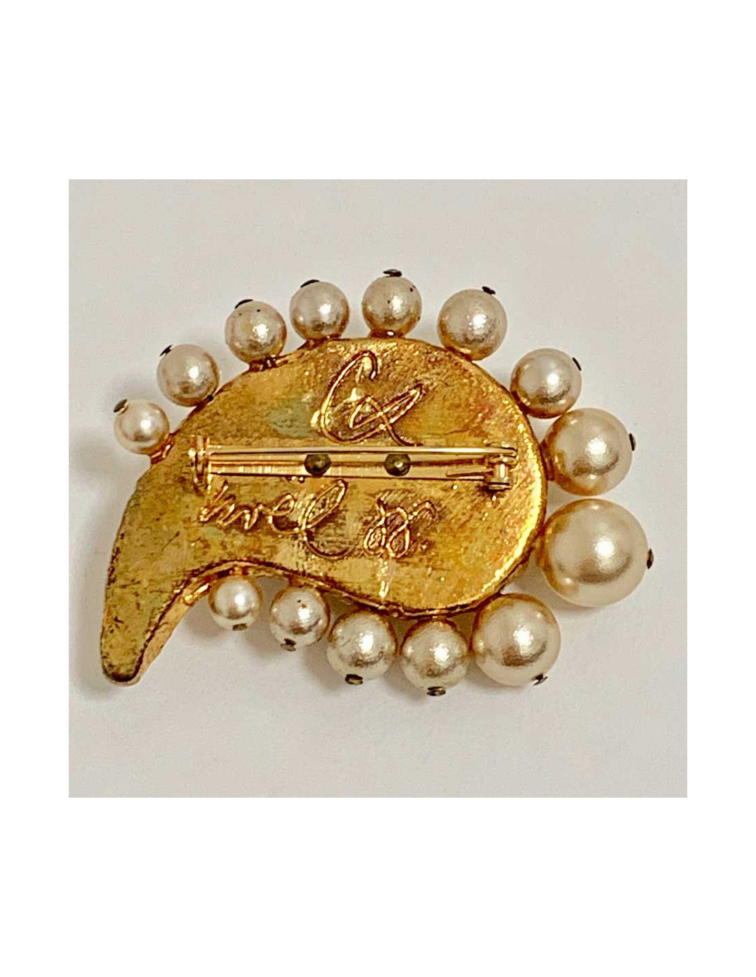 Last items in stock PINS-BROOCHES CHANEL rhinestones and pearls bow brooch CHANEL 33997 1,350.00 € CHANEL rhinestones and pearls bow brooch Condition : very goodMade in FranceCollection : broochMaterials : metal, rhinestonesColors : black, silver, transparentMeasurements : 7.5 x 5 cmStamp : yesYear : Spring 2005Hardware : silver finish metalDetails : black and transparent rhinestones with mother-of-pearl beads Advantage Valois Vintage Paris : comes in... Add to cart