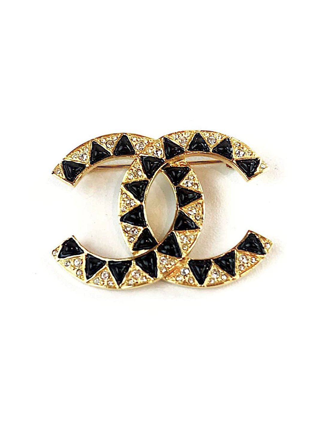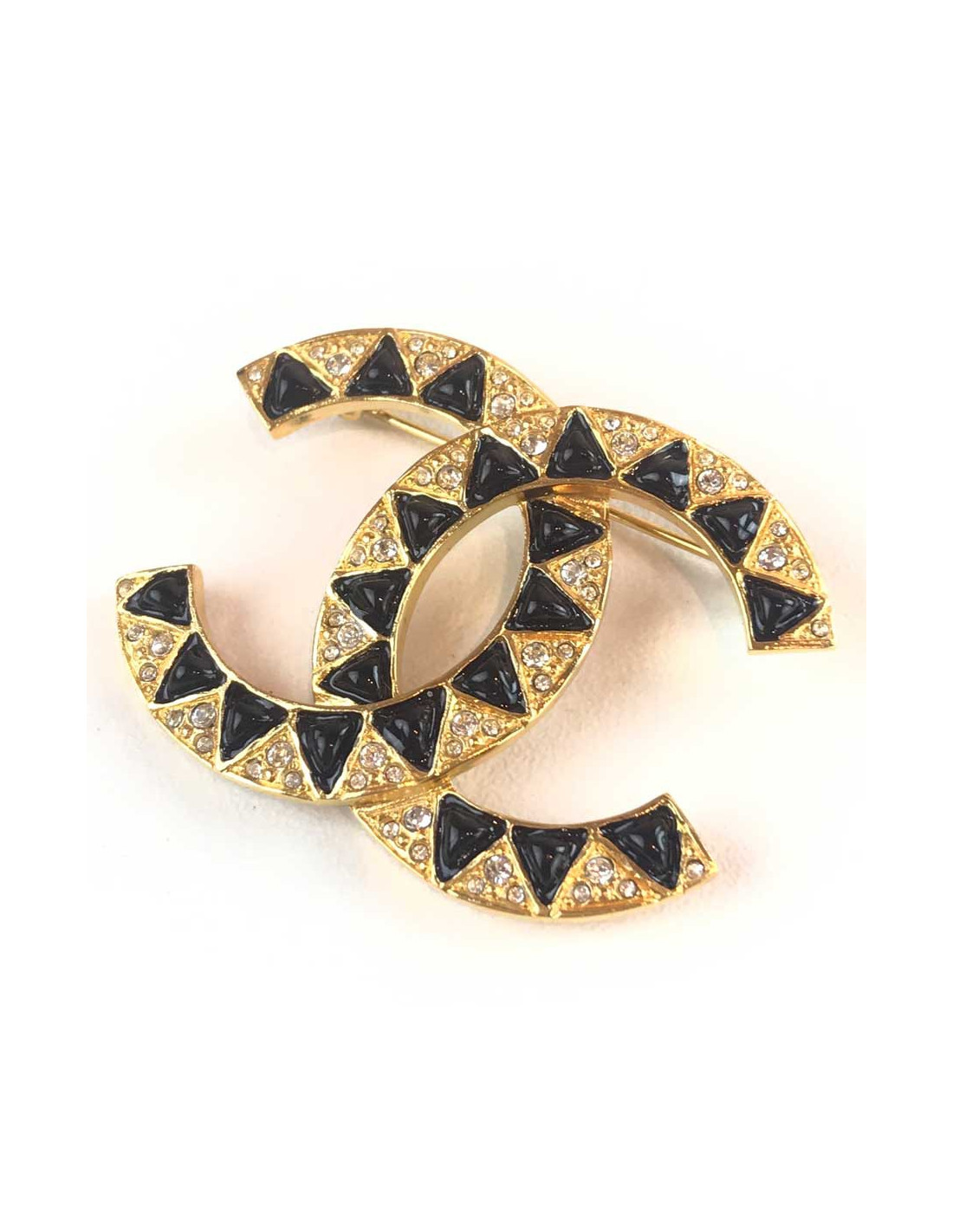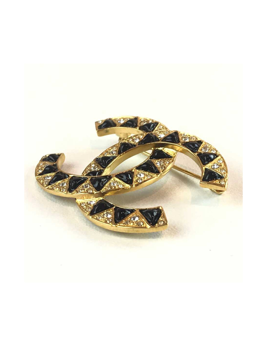 It is of Egyptian inspiration, it represents the distinctive sign of the House: the famous double C. It is in metal gilded with fine gold, set with rhinestones and black enamel.