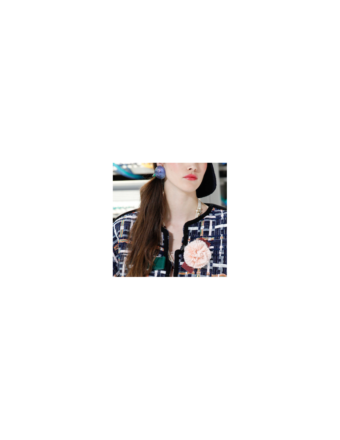 CHANEL camellia brooch in dark blue fabric