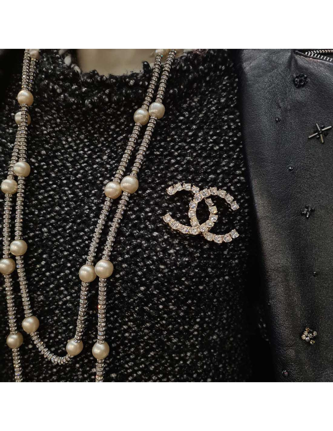 PINS-BROOCHES CHANEL rhinestones and pearls brooch CHANEL 32026 650.00 € CHANEL rhinestones and pearls brooch Condition: very good (micro-scratches at the back)Made in FranceModel : broochColor : light goldMaterial gold finish metal, rhinestonesMeasurements : 4 x 5.7 cmStamp : yesYear : 2022 Add to cart