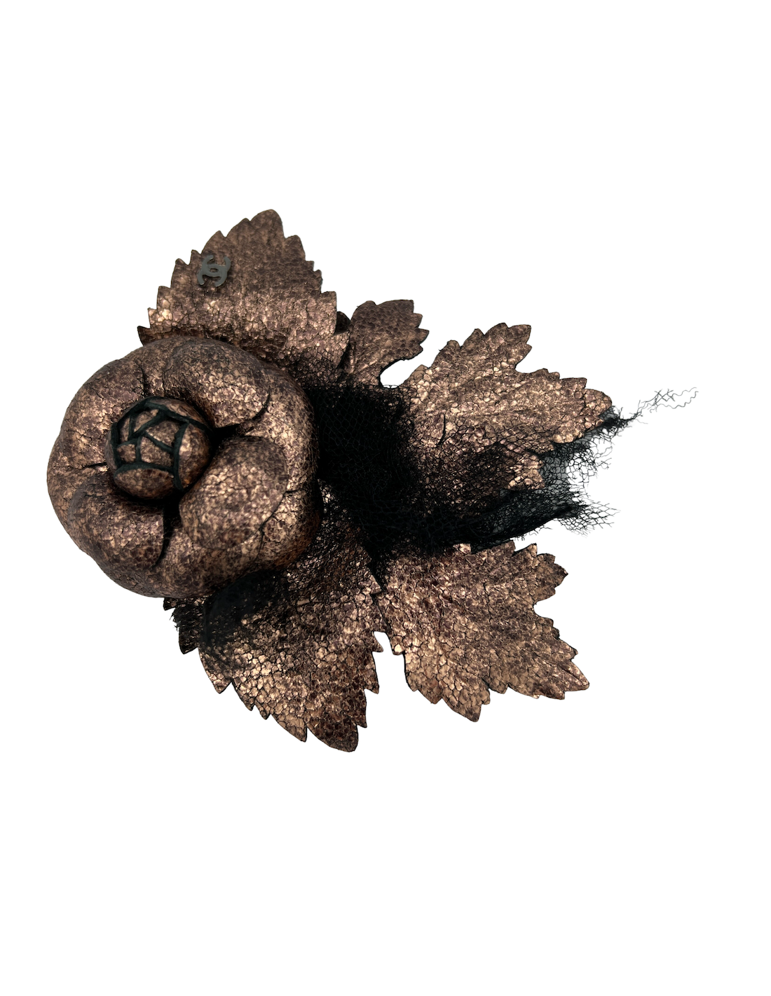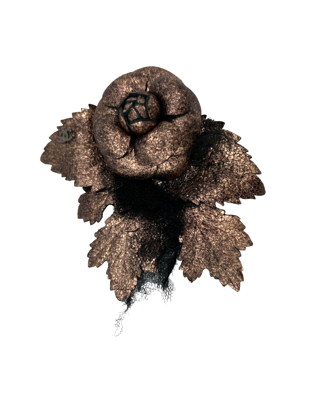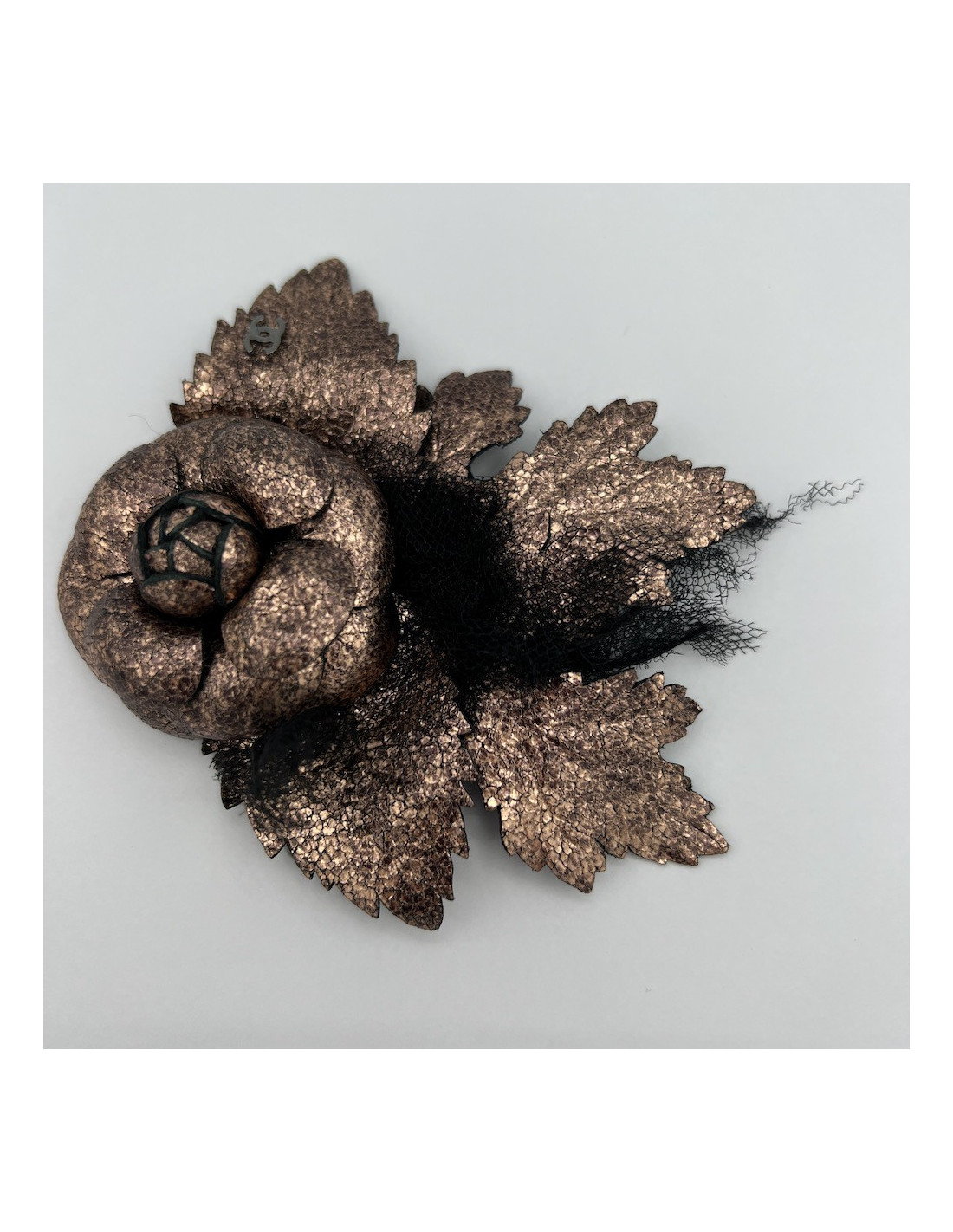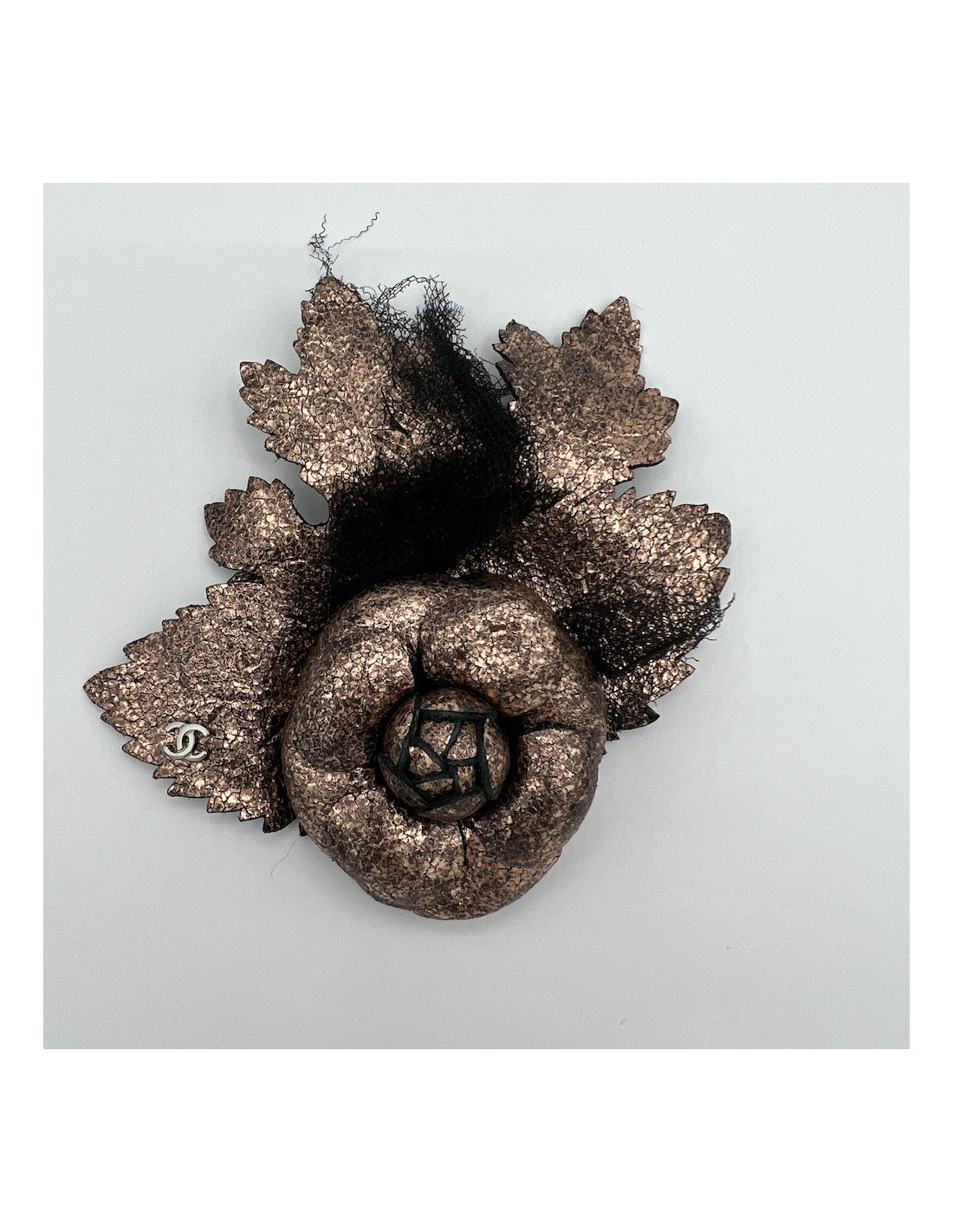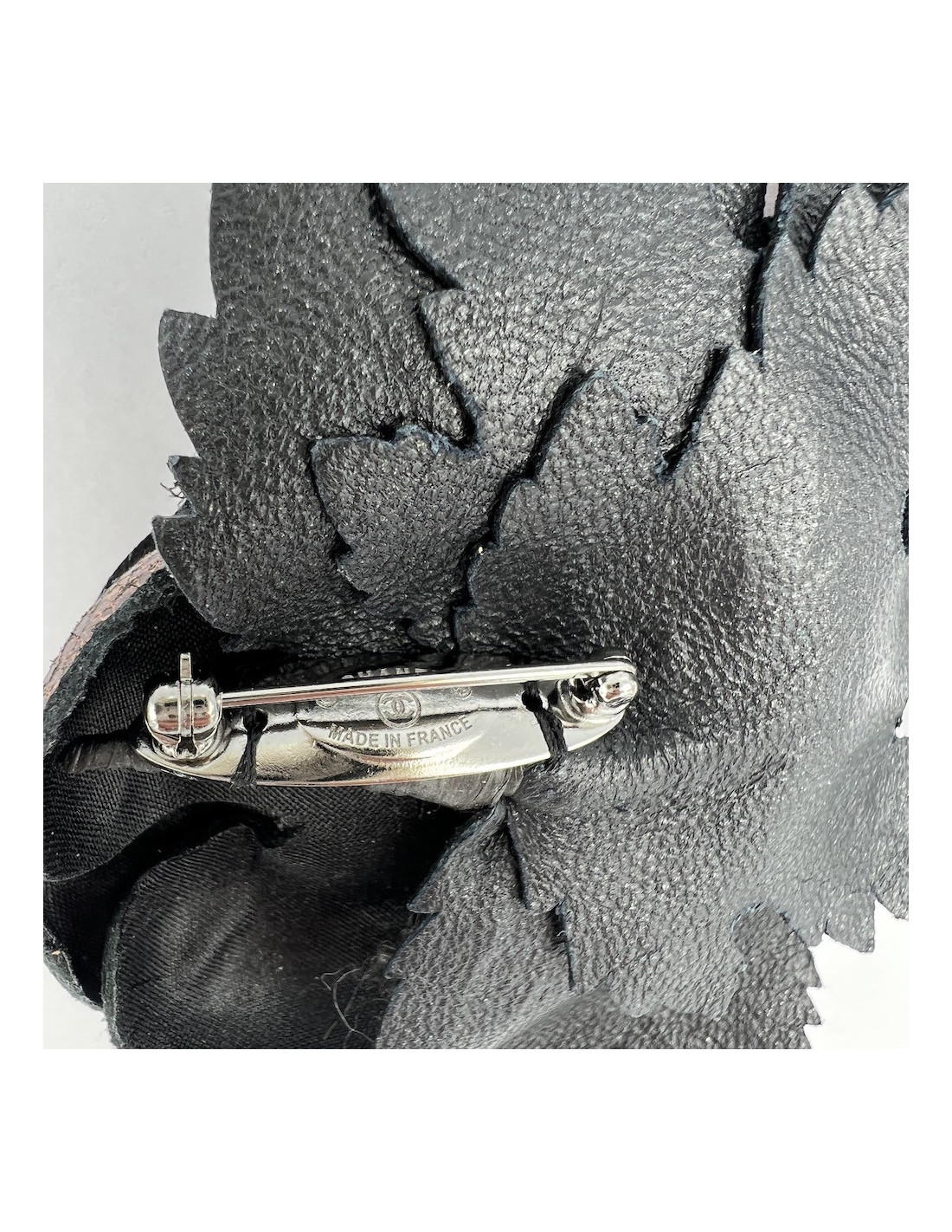 CHANEL Camellia Brooch in Moiré Leather
