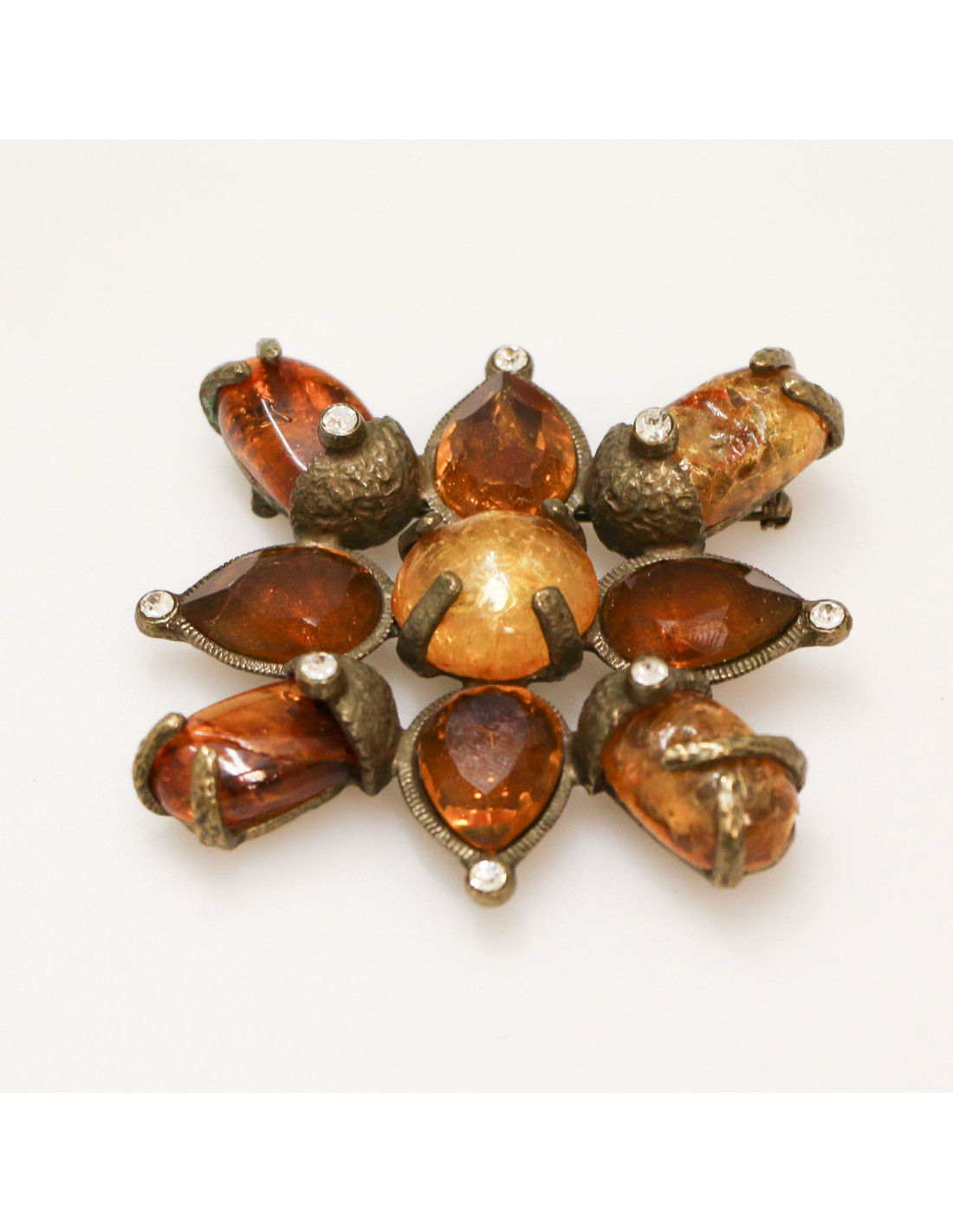 Last items in stock PINS-BROOCHES YSL YVES SAINT LAURENT vintage gilded circular brooch SAINT LAURENT 34414 750.00 € YSL YVES SAINT LAURENT vintage gilded circular brooch Condition : very goodMade in FranceMaterials : metal, molten glass, crystalColors : gold, emerald, multicolorMeasurements : diameter 4.5 cmStamp : yesDetails : vintage circular brooch. Made by Maison Goossens. The front is worked with topaz, fuschia, ruby, emerald and sapphire crystal inlays. In the... Add to cart