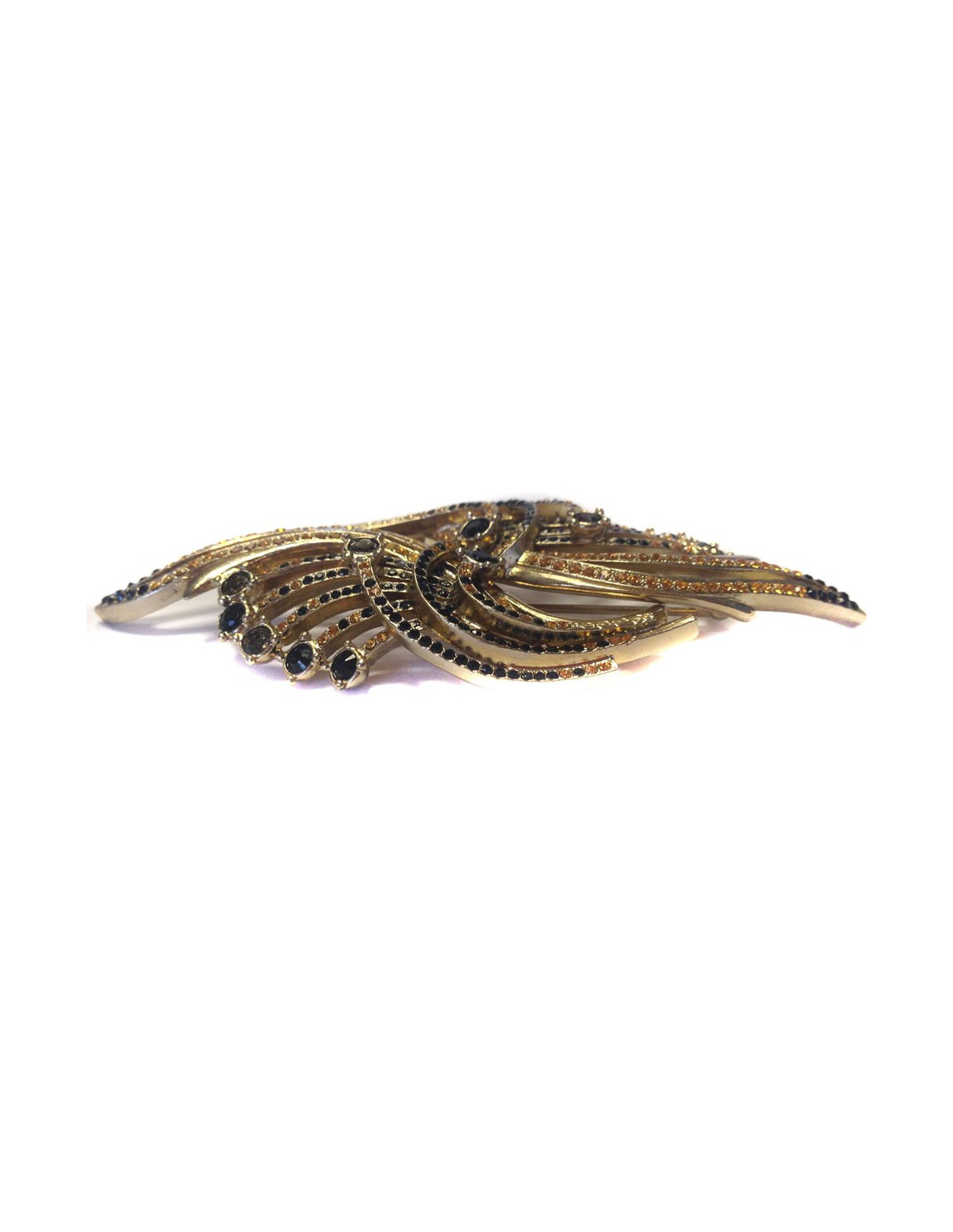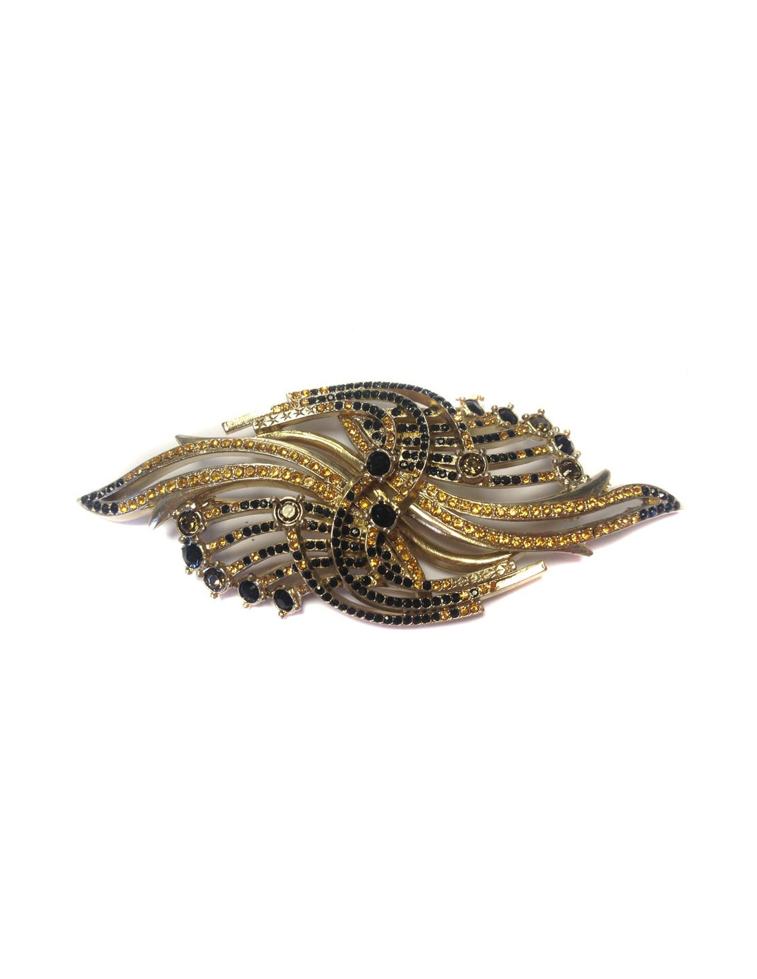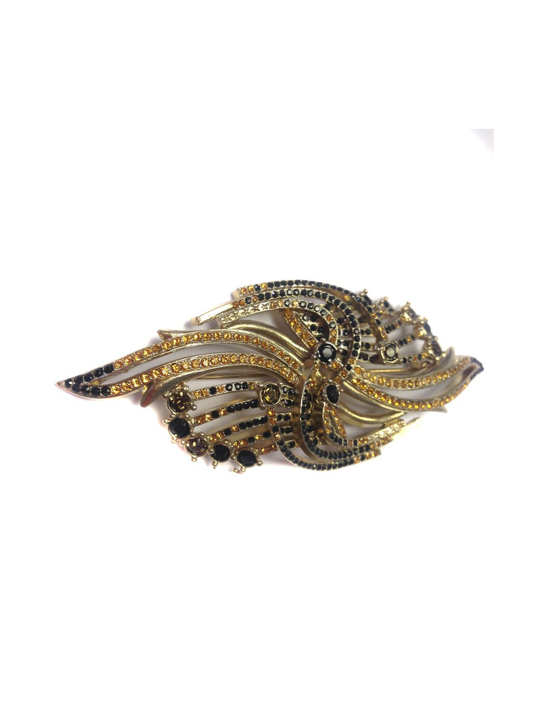 PIN seam in gold metal and rhinestones black and amber