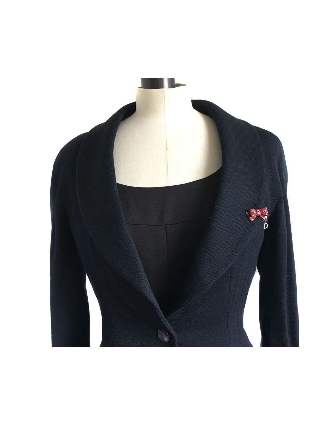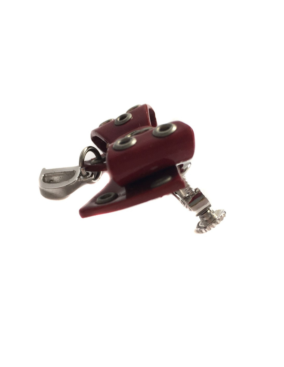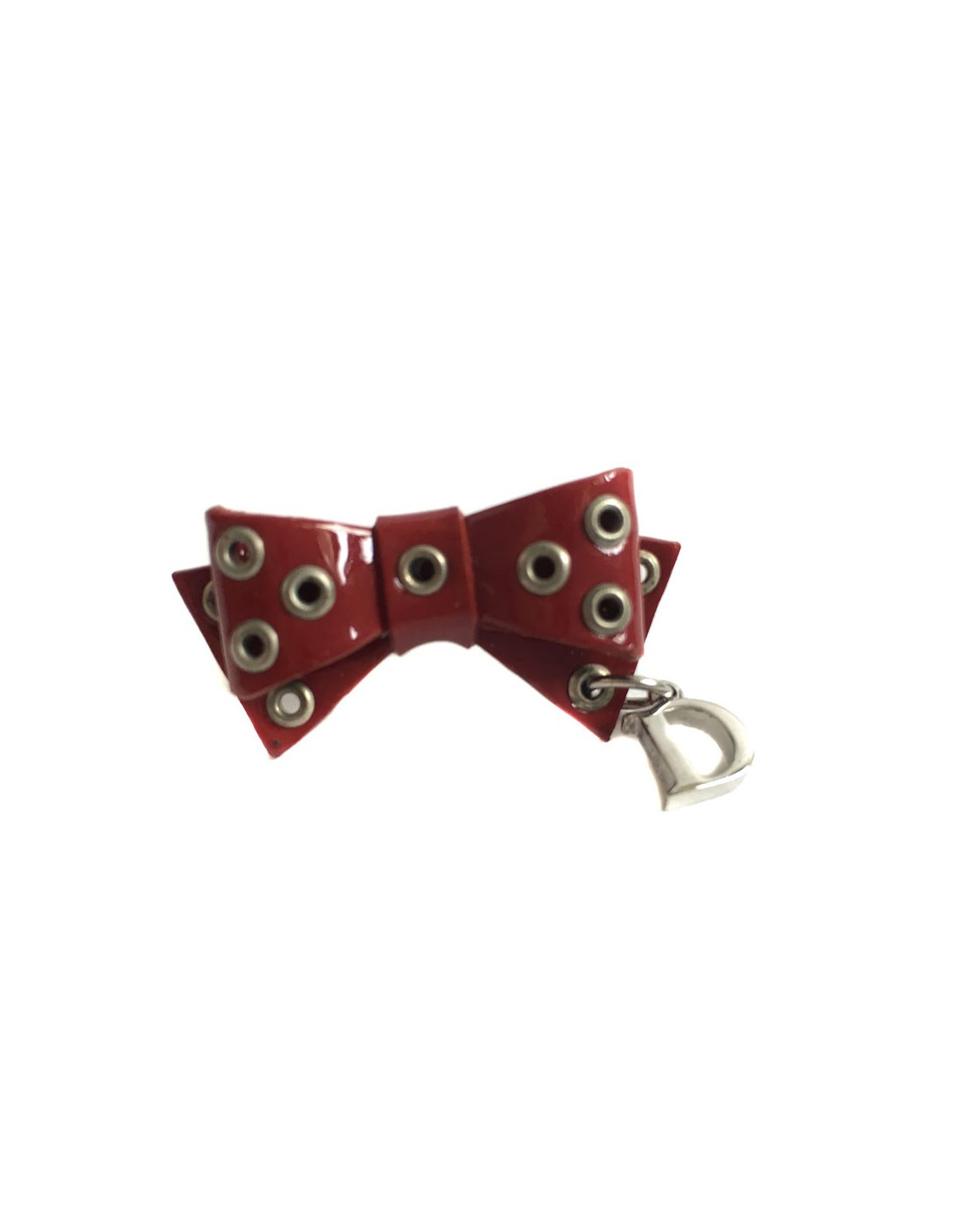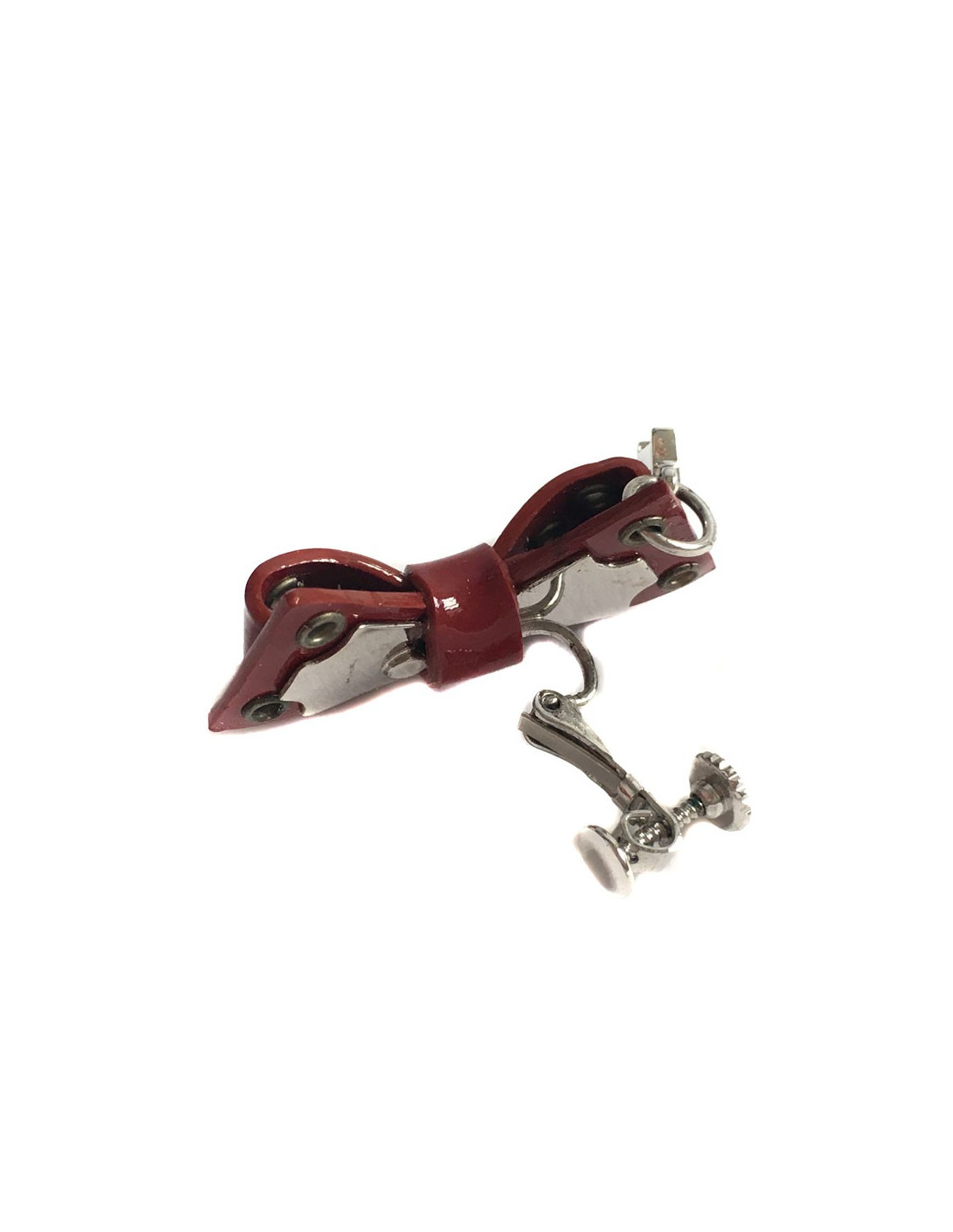 Small vintage DIOR brooch shaped studded painted Burgundy node. Small D, with the DIOR initials listed on it, on one side of the PIN. Clasp clip with a small screw to adjust the PIN to the thickness of the garment.