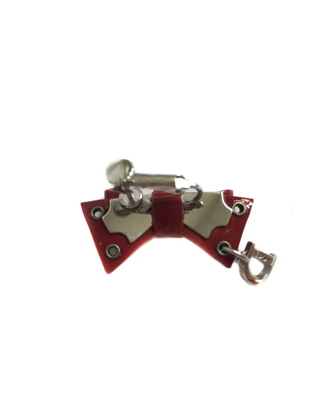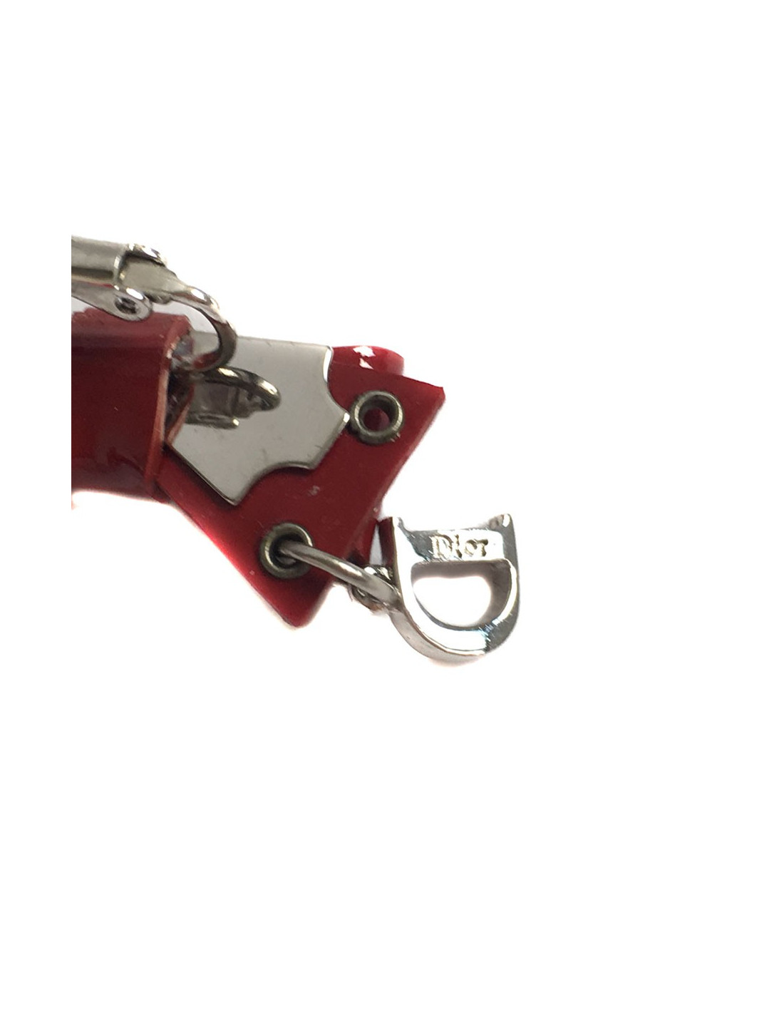 Small vintage DIOR brooch shaped studded painted Burgundy node. Small D, with the DIOR initials listed on it, on one side of the PIN. Clasp clip with a small screw to adjust the PIN to the thickness of the garment.