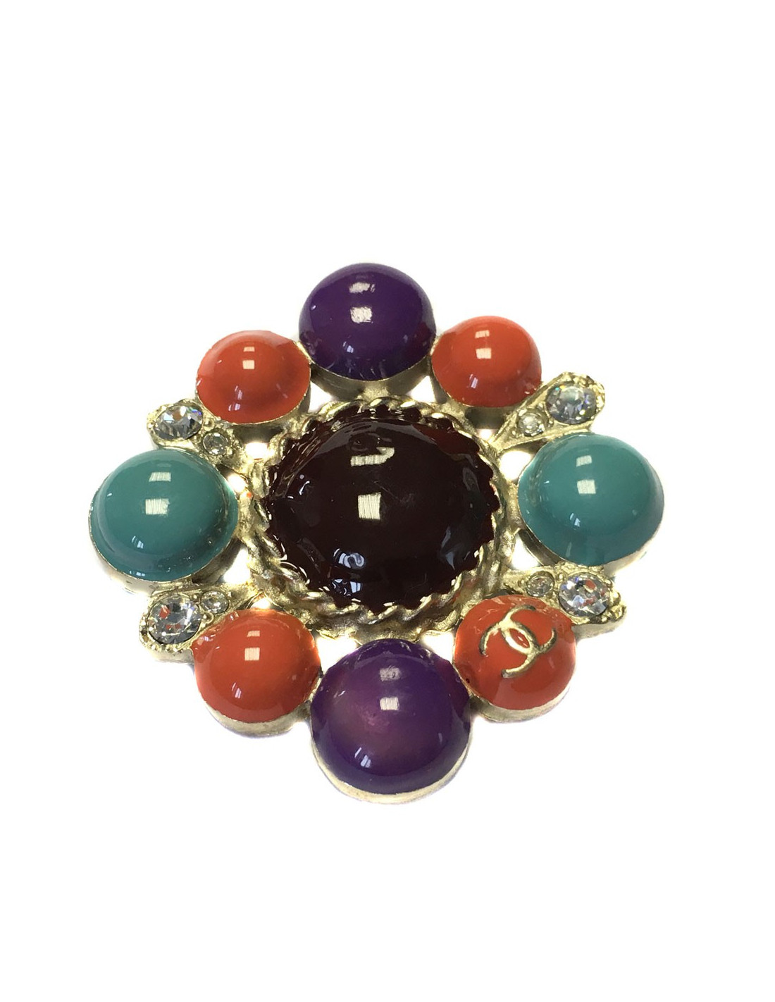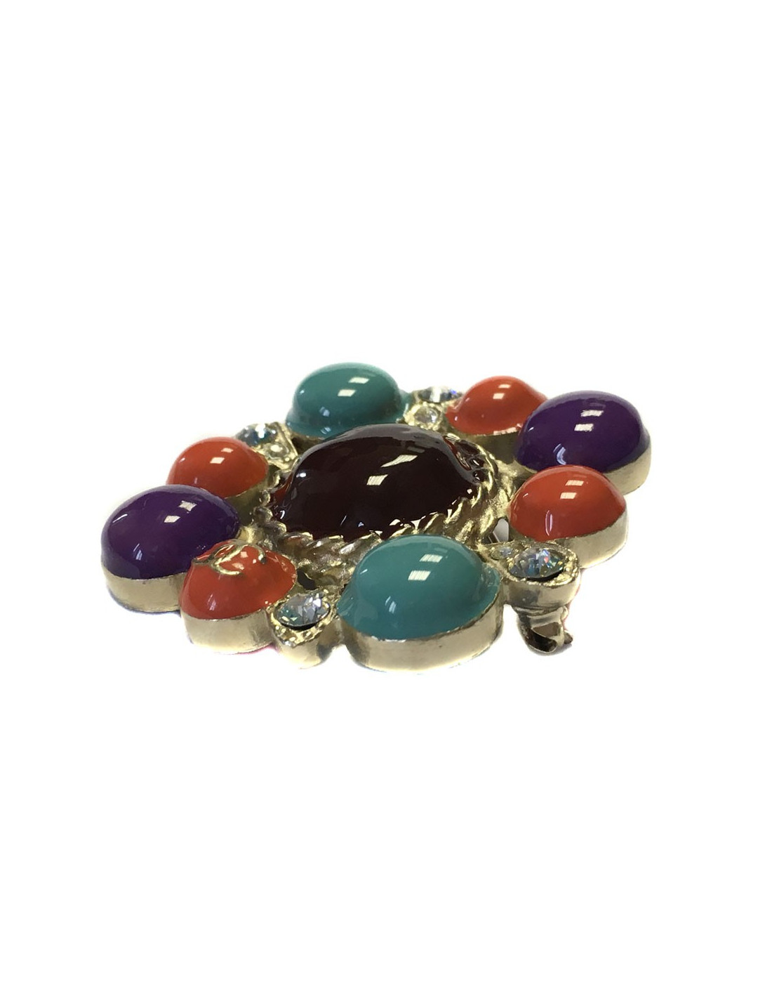 Multicolor CHANEL brooch and rhinestones