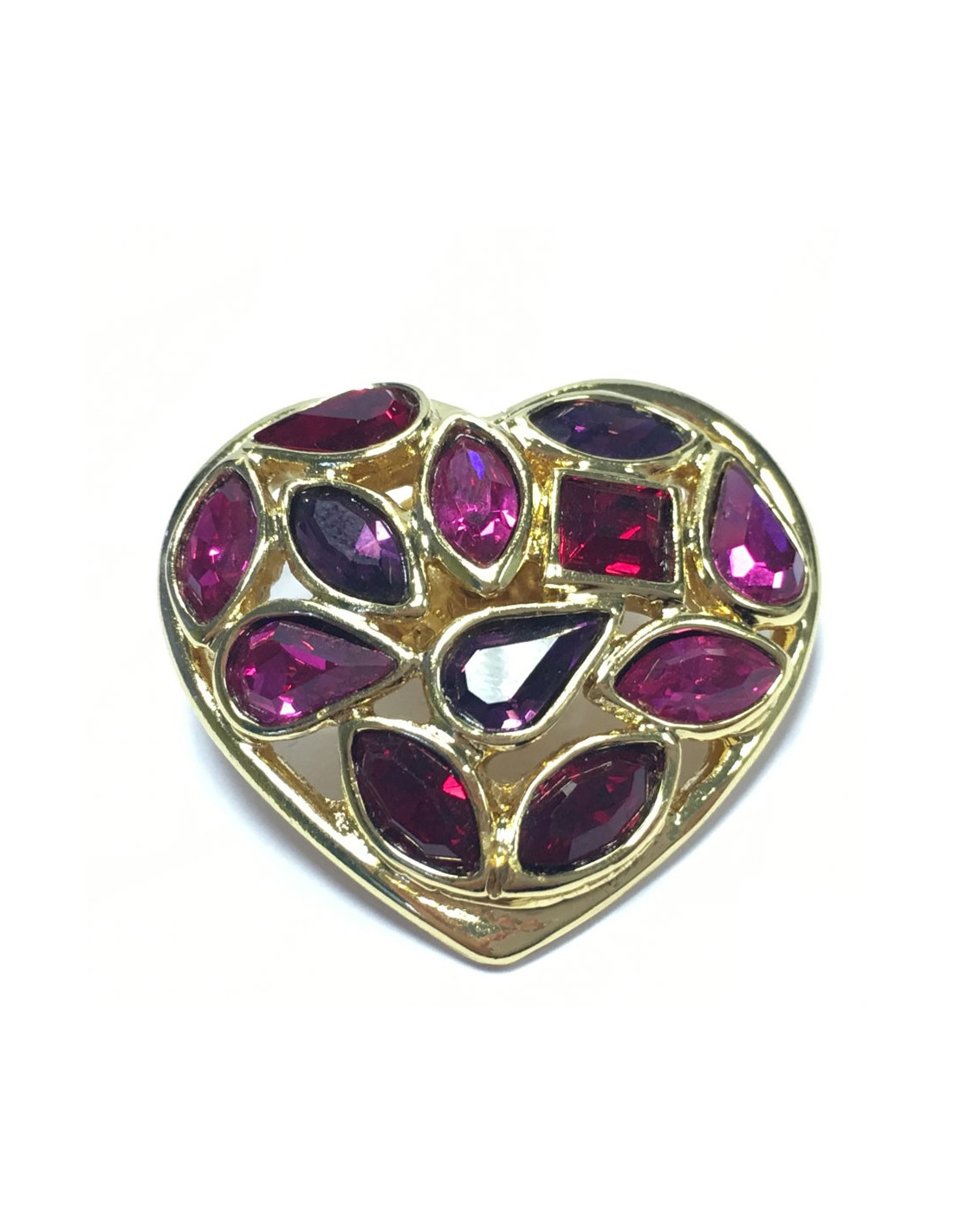 YVES SAINT LAURENT heart pin in giled metal and corlored small resin
