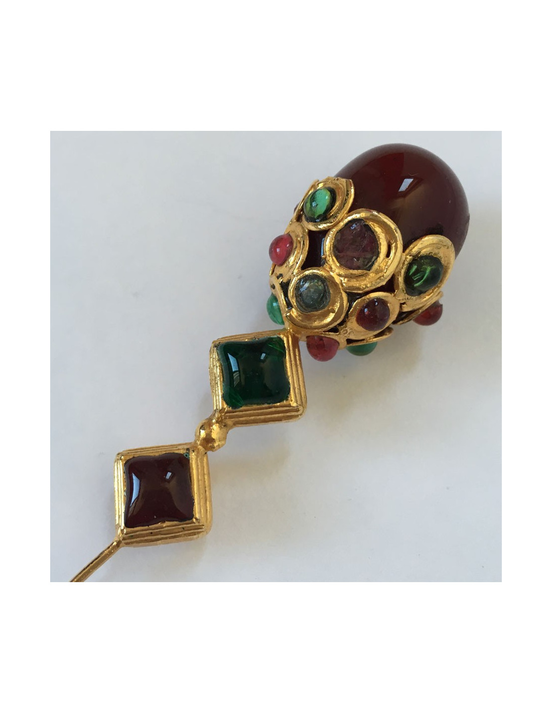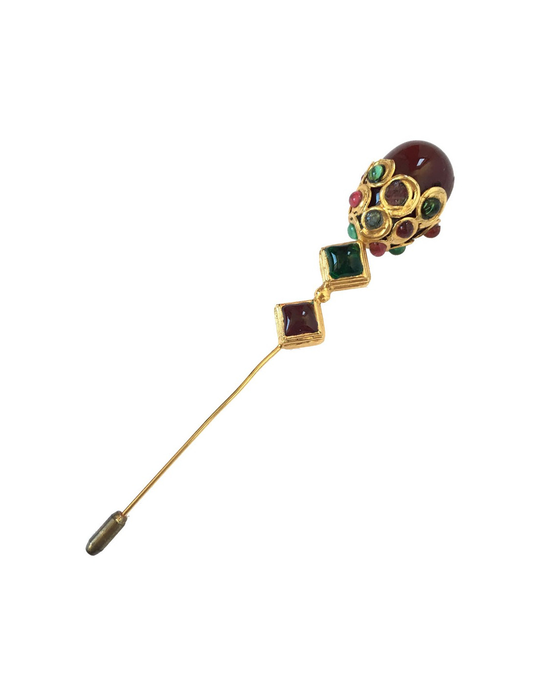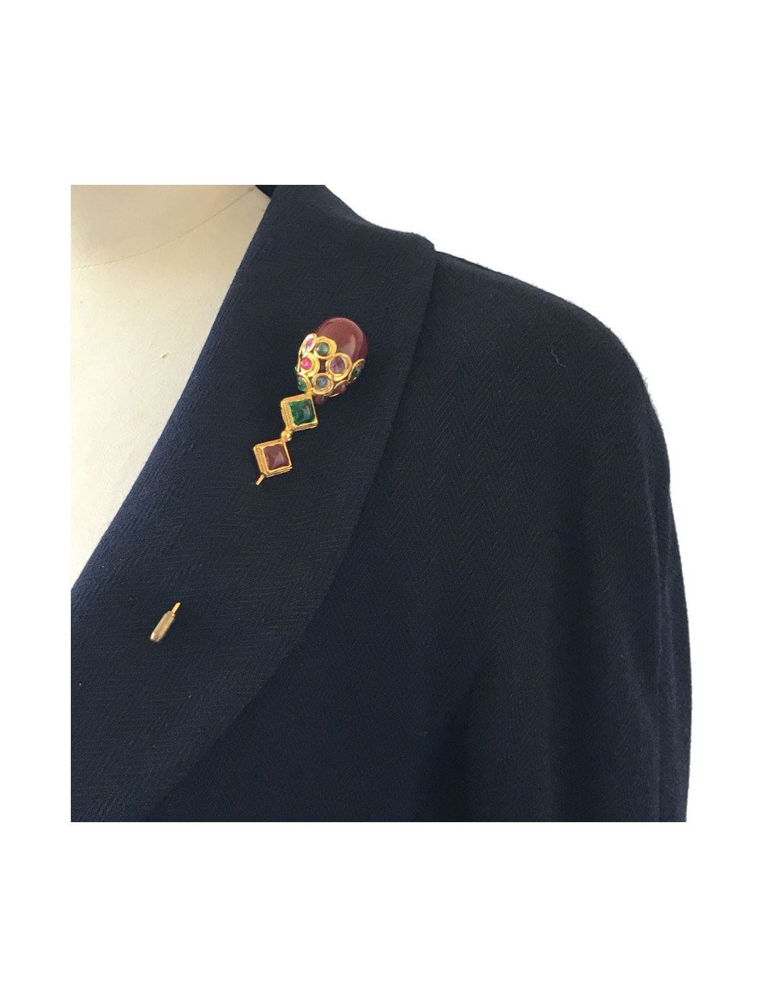 Last items in stock PINS-BROOCHES YSL YVES SAINT LAURENT vintage gilded circular brooch SAINT LAURENT 34414 750.00 € YSL YVES SAINT LAURENT vintage gilded circular brooch Condition : very goodMade in FranceMaterials : metal, molten glass, crystalColors : gold, emerald, multicolorMeasurements : diameter 4.5 cmStamp : yesDetails : vintage circular brooch. Made by Maison Goossens. The front is worked with topaz, fuschia, ruby, emerald and sapphire crystal inlays. In the... Add to cart