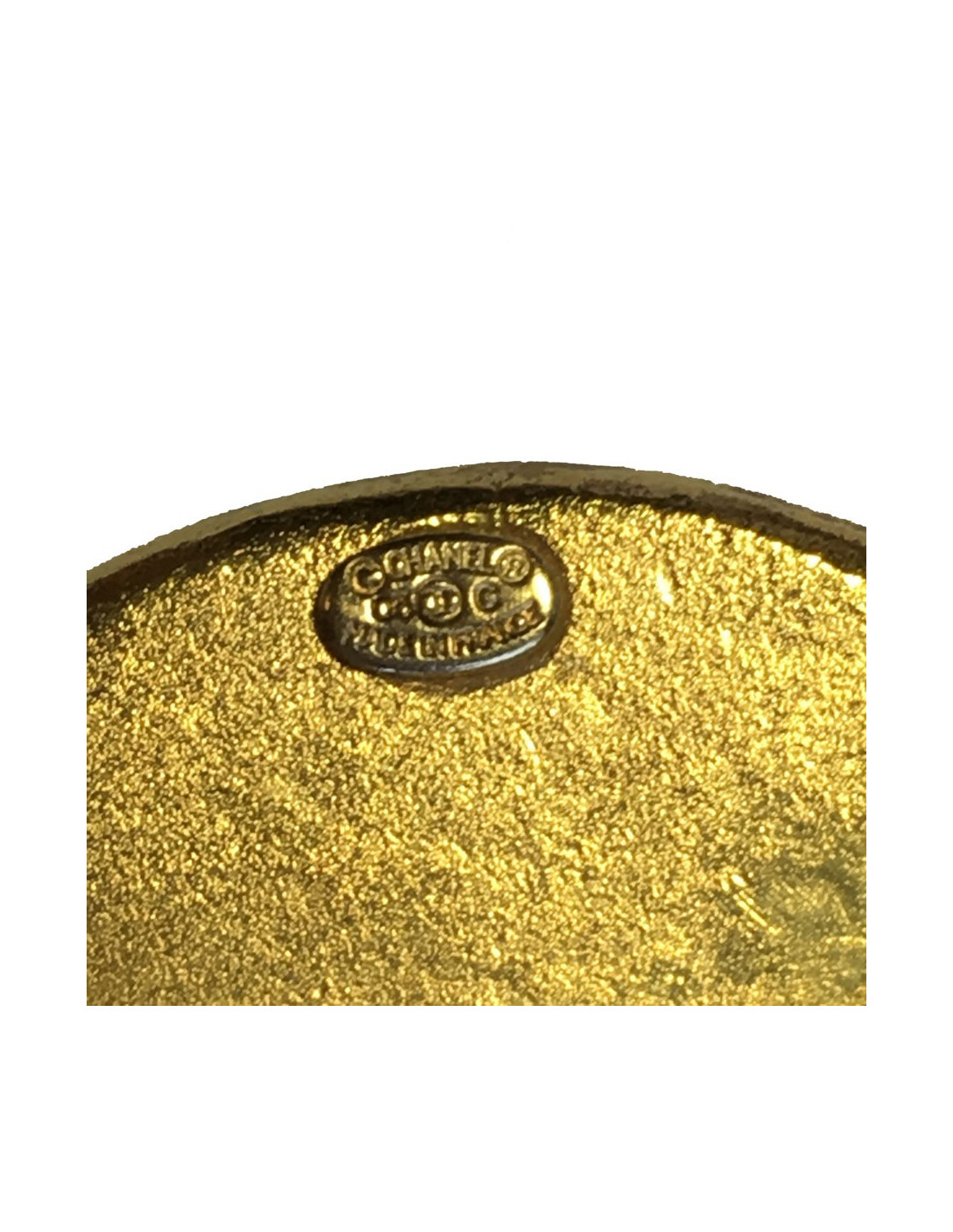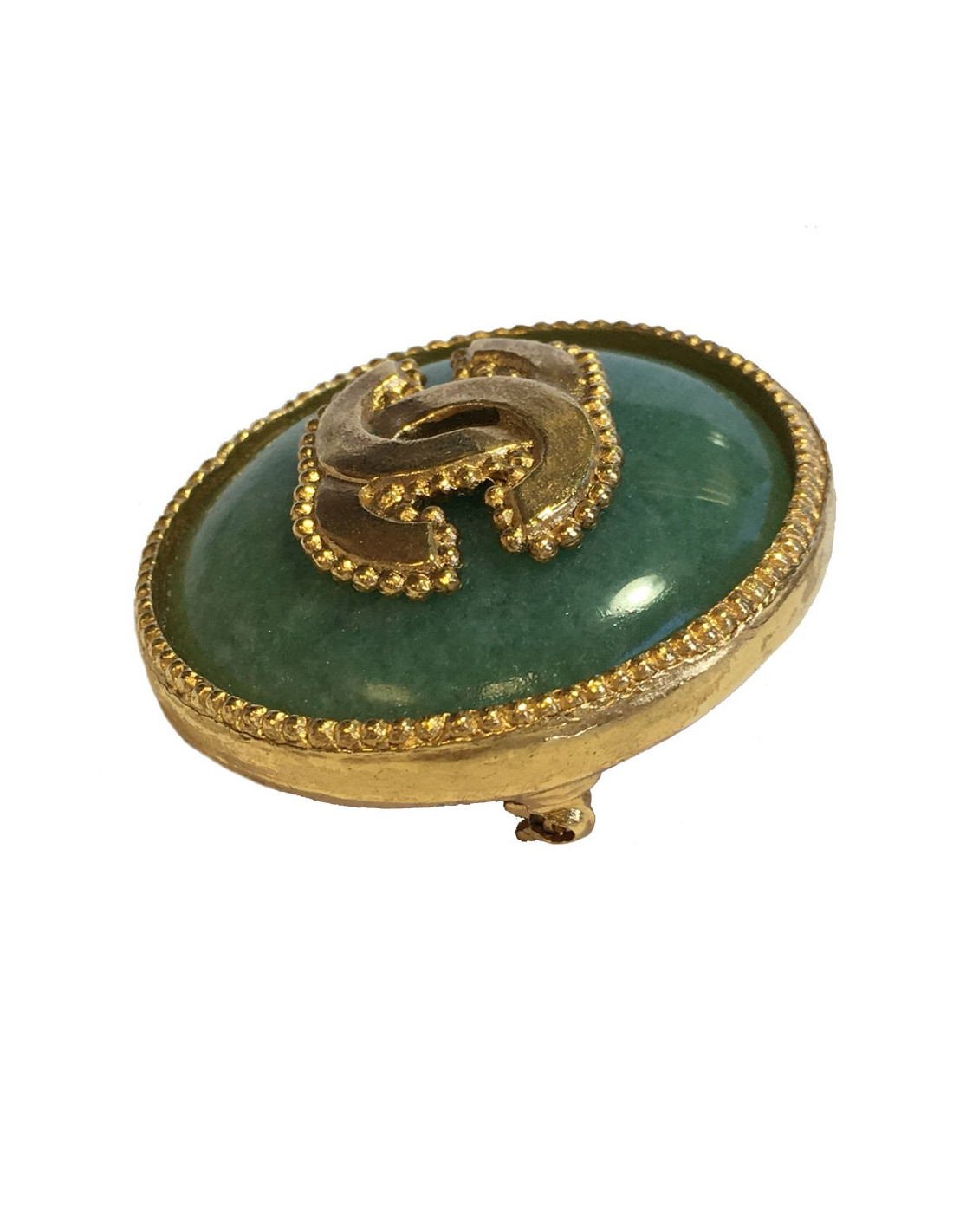 CHANEL round brooch in gilded metal and jade color semi precious stone