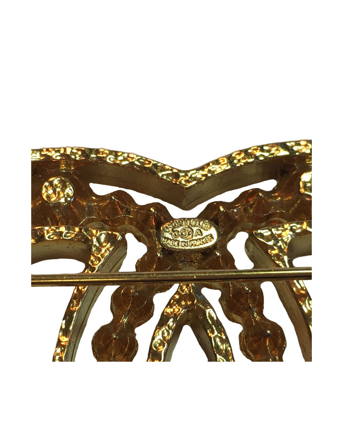 Last items in stock PINS-BROOCHES CHANEL gilded brooch CHANEL 25159 530.00 € CHANEL gilded brooch Condition: very goodMade in FranceModel: broochMaterials: : metalColors : gold, blackMeasurements : 5 X 4,5 cmYear : Fall 17, no hologram Add to cart