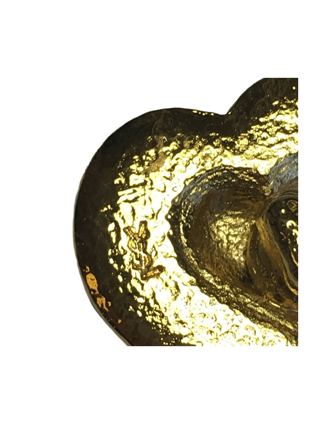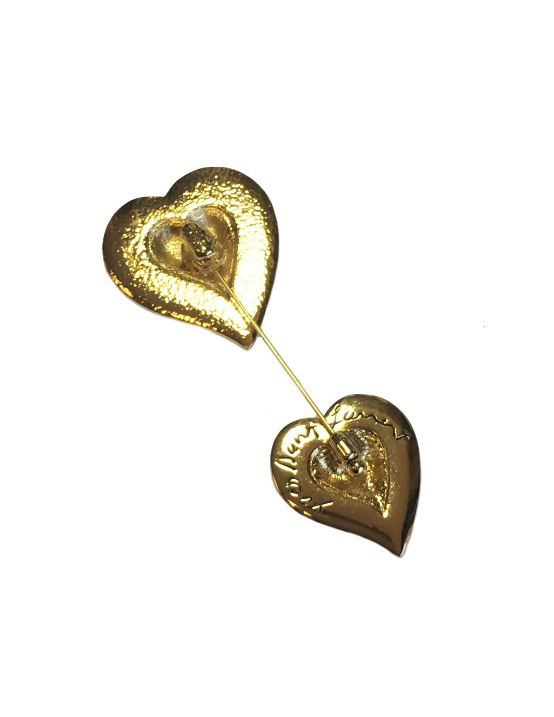 YSL YVES SAINT LAURENT two hearts in gilded metal brooch