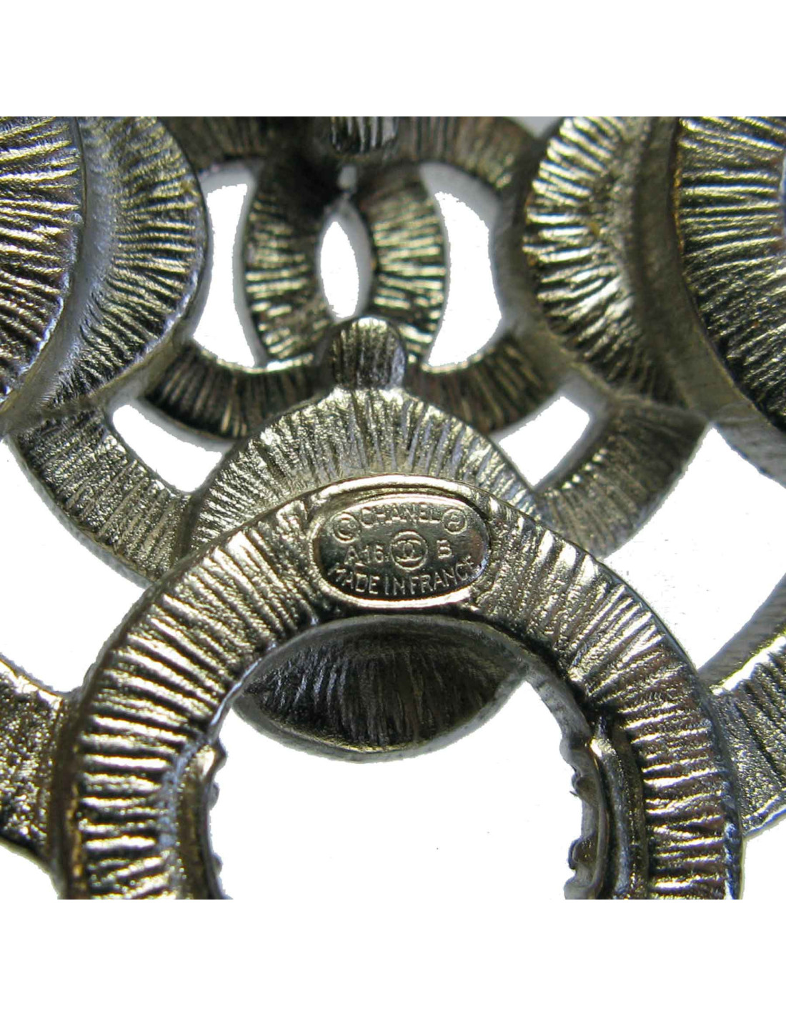 Last items in stock PINS-BROOCHES Chanel Starry Brooch Silver Metal and Crystals CHANEL 32561 750.00 € Chanel brooch with stars in silver metal Condition : excellentMade in FranceMaterial : silver metal, Swarovski crystalsColor : silverDimensions : 5,3 x 5,5 cmHardware : silver metalStamp : yesYear : Fall Winter 2015Details : brooch representing several stars linked with two small CCDelivered in a Valois Vintage Paris dustbag Add to cart