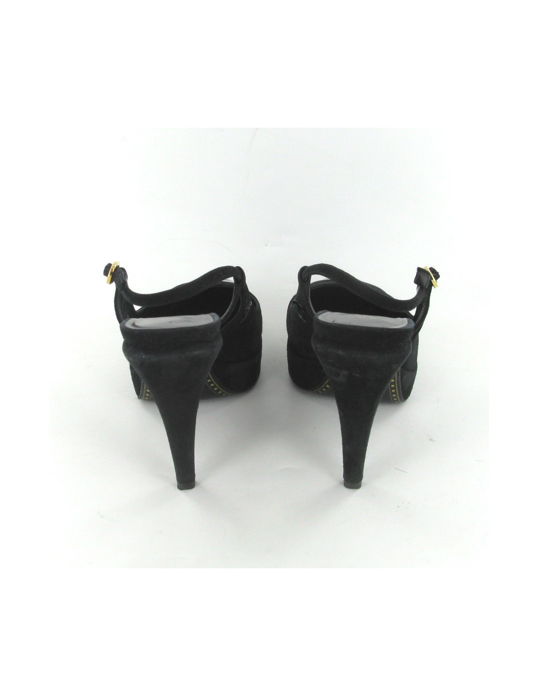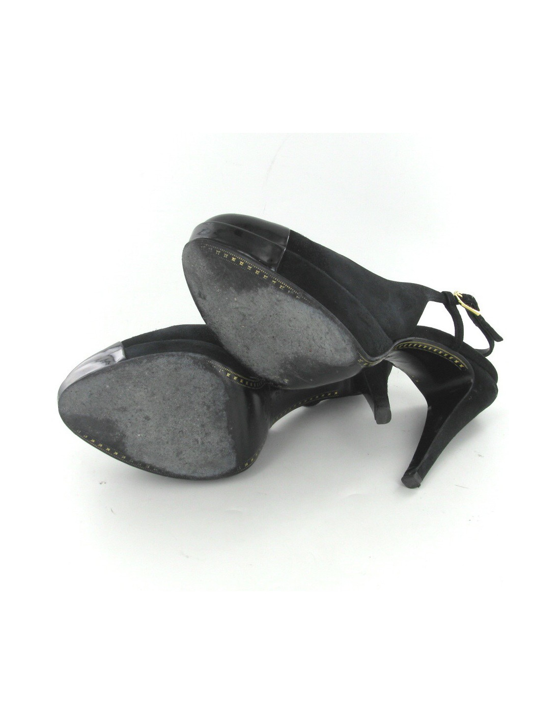 Gorgeous shoes in suede and patent leather black T 37 CHANEL. CHANEL is gold metal, there is a CC black metal inside the foot. Wear on the suede to the heel and 2 small rips on the left heel. worn very little.