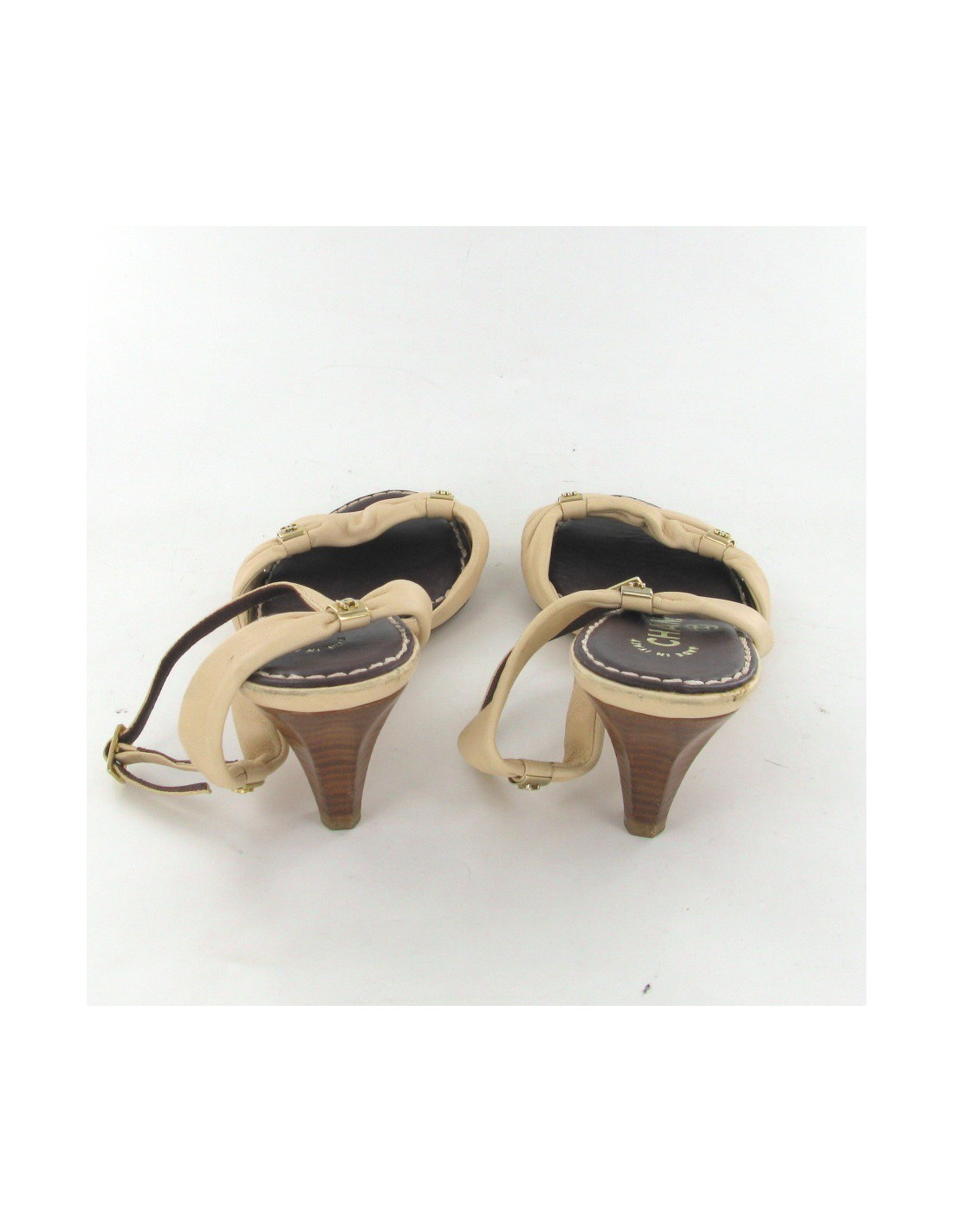 Sandals CHANEL leather beige pink T37.5