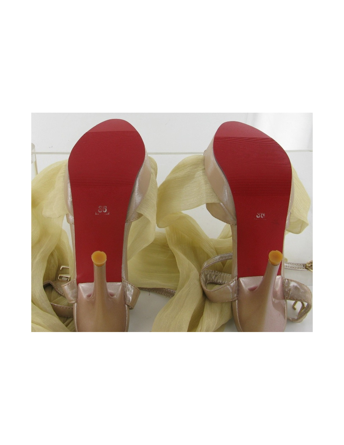 Pretty pumps in powder pink lurex doubled leather silver t36 JQ. LID. - long ribbons in whiteout broken starting from the front of the foot to tie around the ankle and the calf - never worn, new condition.-insole length: 23. 5 cm-outside width: 7 cm-length ribbons: 81 cm dustbag