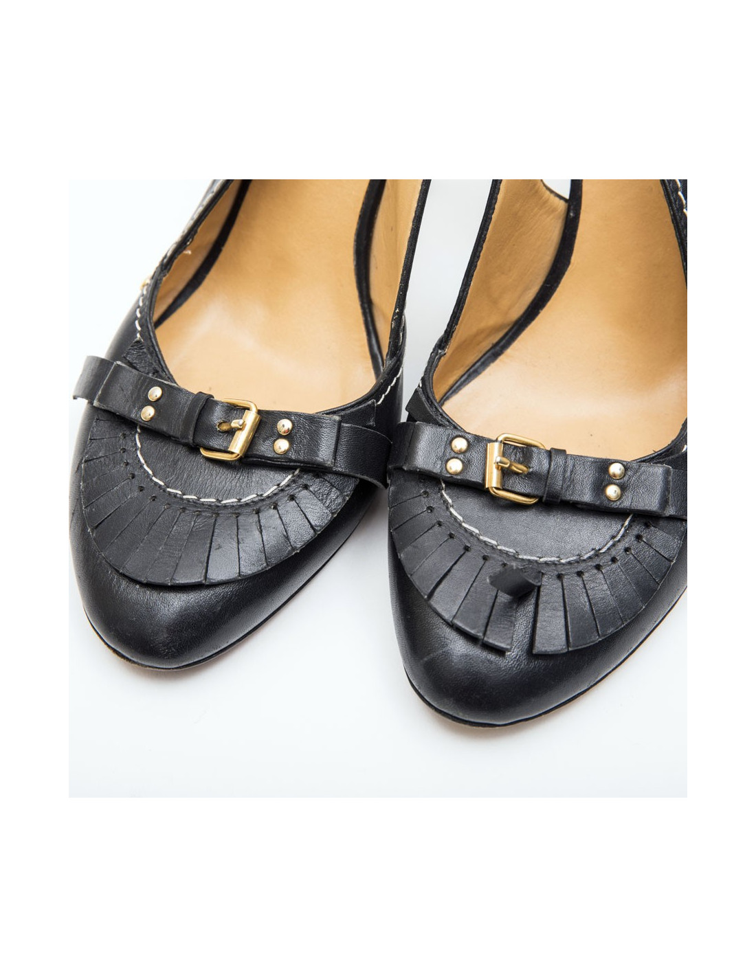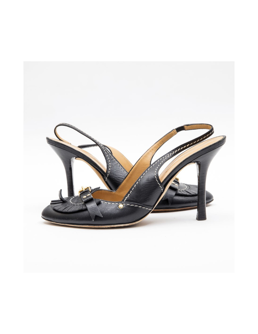 -50.00 € Last items in stock PUMPS - WEDGES BARBARA BUI T38 shoes chocolate smooth leather BARBARA BUI 18585 180.00 € 230.00 € Pumps with platform Barbara Bui smooth leather chocolate with some grey topstitching T 38 en, at the front of the shoe are two gold-plated loops. The heel is in glulam. In very good condition, like new. The heel measures 12.6 cm, 2 cm tray and the width of the sole outdoor 6.6 cm. Will be delivered in a dustbag Valois Vintage Paris Add to cart