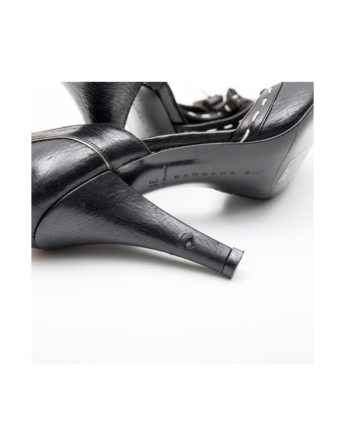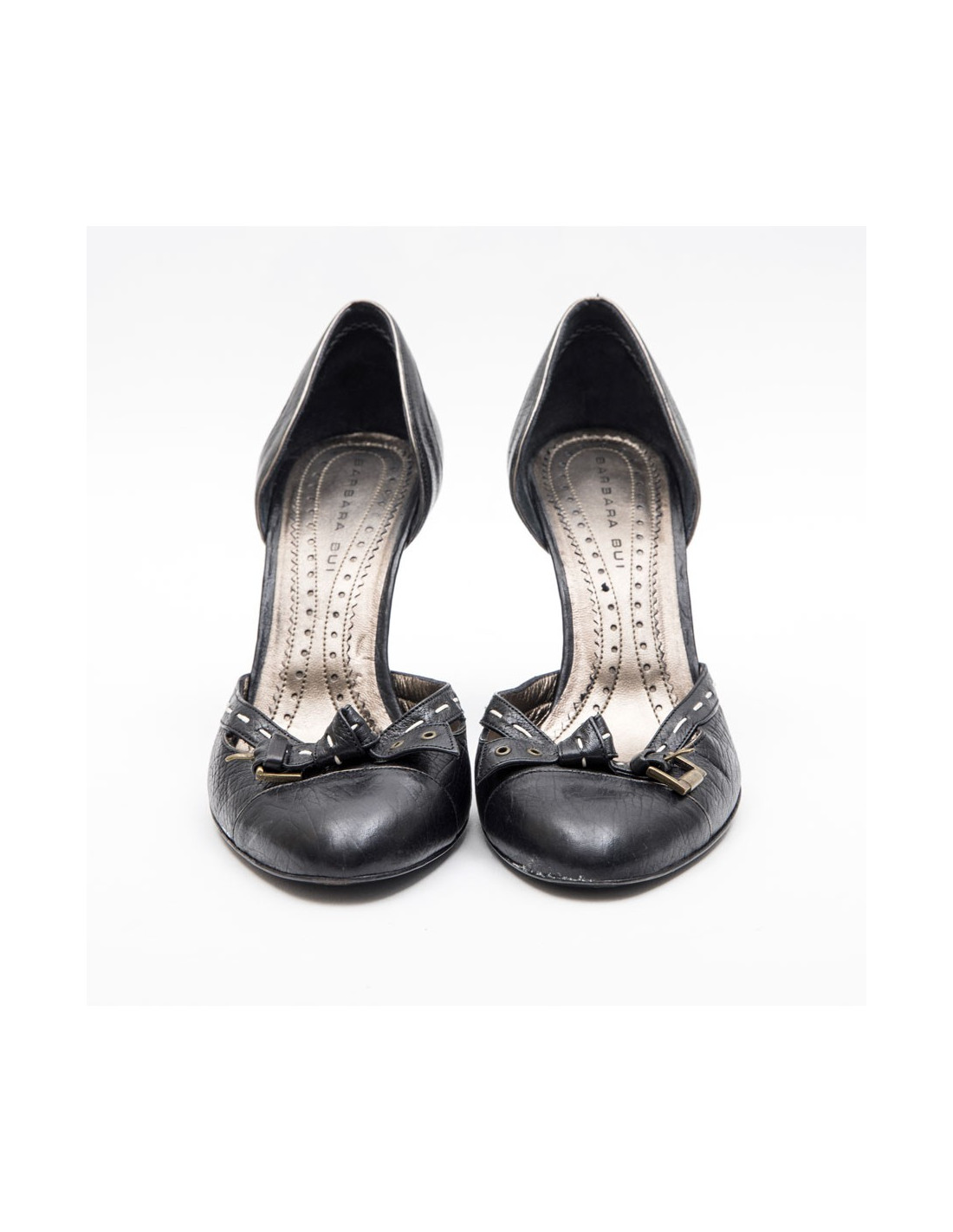 Escarpins T 38 BARBARA BUI cuir noir et piqûres sellier